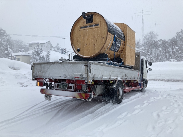 こんにちは。 建築課の濱田滉大です。 株式会社角繁様のイベントに向けて、バレルサウナが搬出されました(^^)/ バレルサウナ自体が2m以上の長さがあるので、専用の大きなトラックにて搬出作業は慎重に、もちろん安全第一で行いました。しかもこの雪なので(笑)作業するにも大変でした。後はどこかで止まっていない事を祈っています^^; ここから会場の秋田までは専門の運送業者さんにお任せして運んでもらいます(^_^)最近青森県内でももキャンプ場や別荘などに取り入れるたいというご相談も増えていますが、今回は県外展示となりますので、間近で見て触れていただけるチャンスとなっています。これを機会に皆様是非ご参加ください。 ※バレルサウナの入浴や体験は今回行いませんので、あらかじめご了承ください。 ※お問い合わせは現地にて弊社スタッフ及びイベントスタッフにお問い合わせください。 日時 2026年2月5日(木)午前9時〜午後4時 会場 株式会社角繁秋田事業センター 秋田県秋田市寺内字蛭根85-38