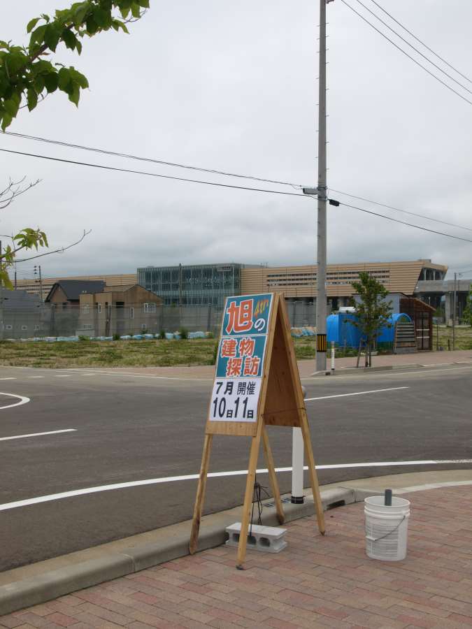 看板、後方の建物は今年開通する新幹線 新青森駅です。