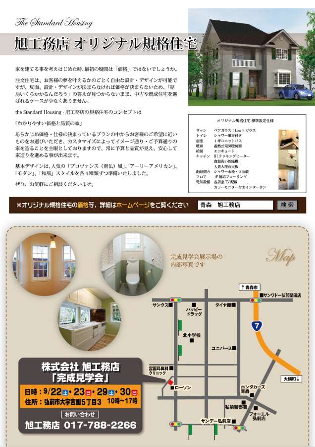 さて、今月9月22日より完成見学会開催します。