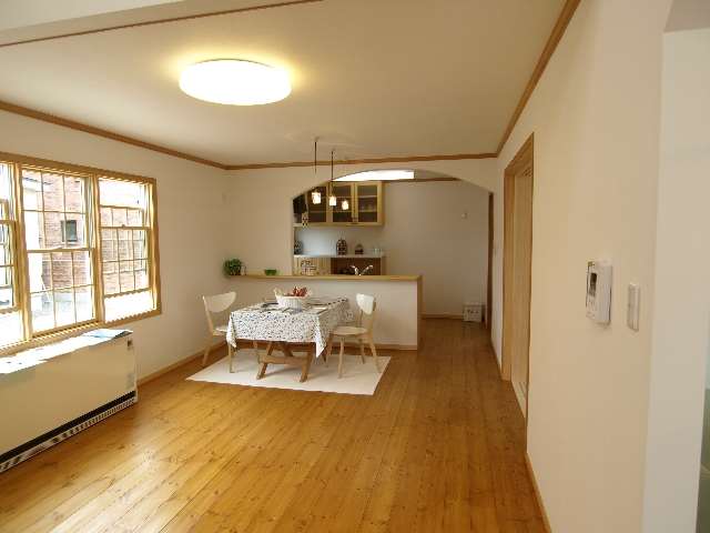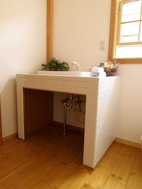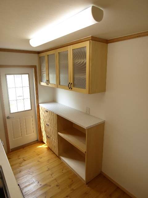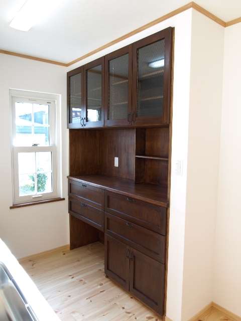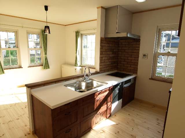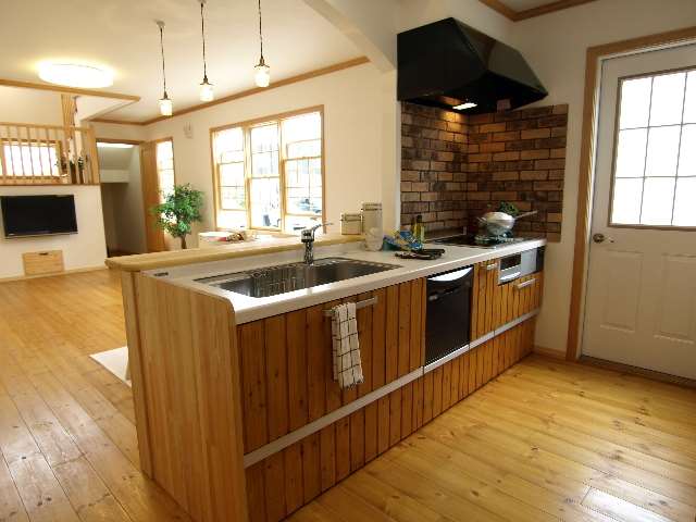 キッチン(メーカーさんのキッチンにパイン材を張りました・・・もちろん手造り)