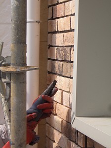 タイルの目地埋め作業