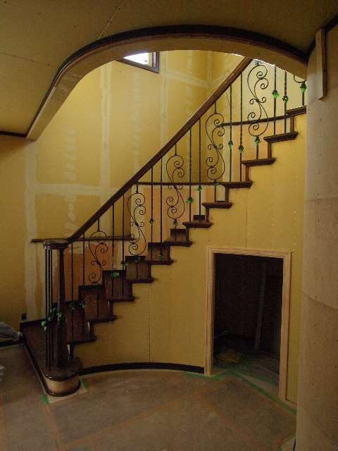 *らせん階段、手摺はアイアン仕様