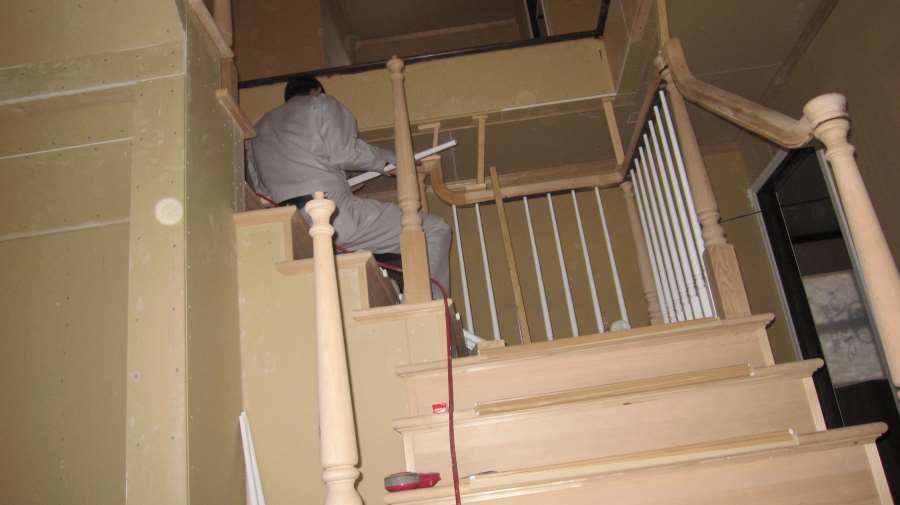『匠 Takkiy』が階段の親柱と手摺りを造作中です。