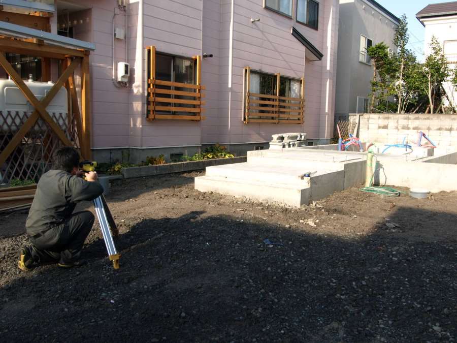 レベル作業(建物を水平に建てる)