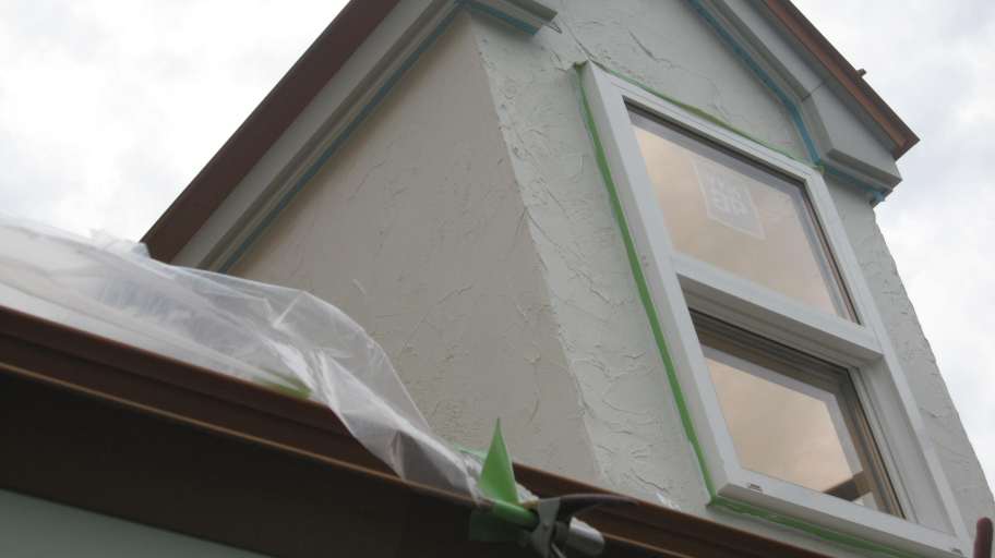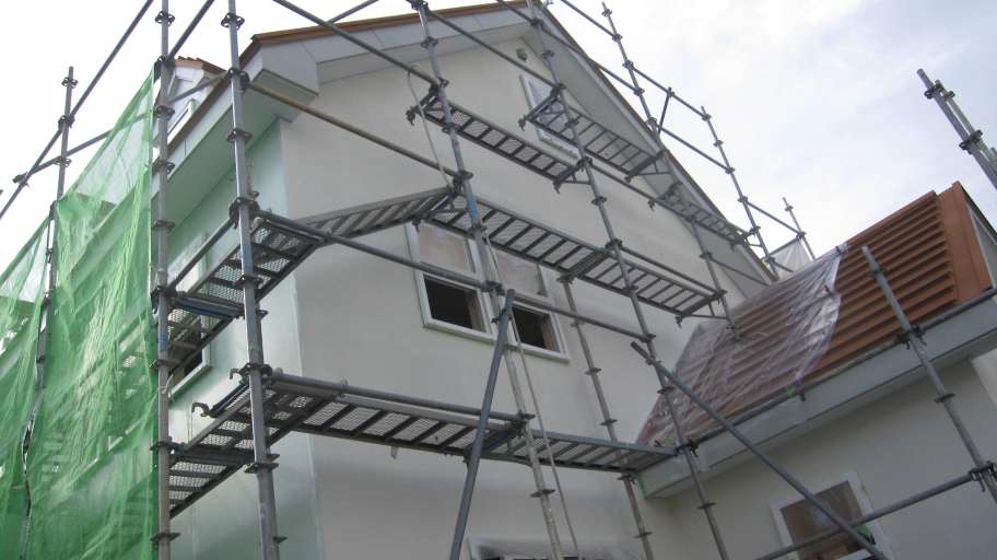 塗り壁の下地処理を終えたサイディングが『お化粧』待ちです。