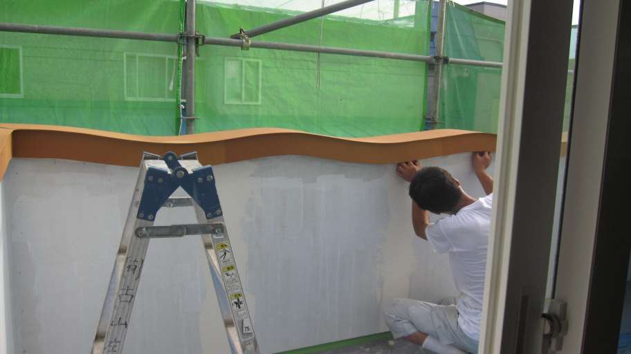 曲がりくねったベランダの笠置で仕事が進みません・・・・・左官屋さんゴメン