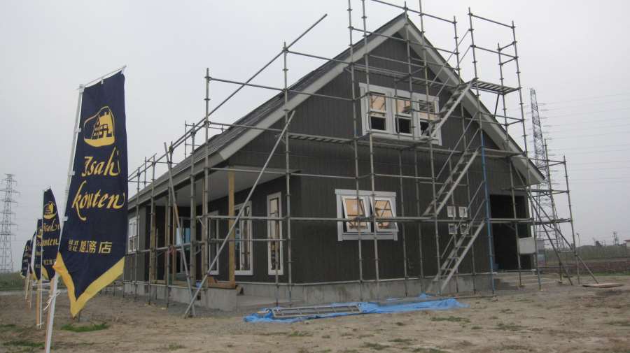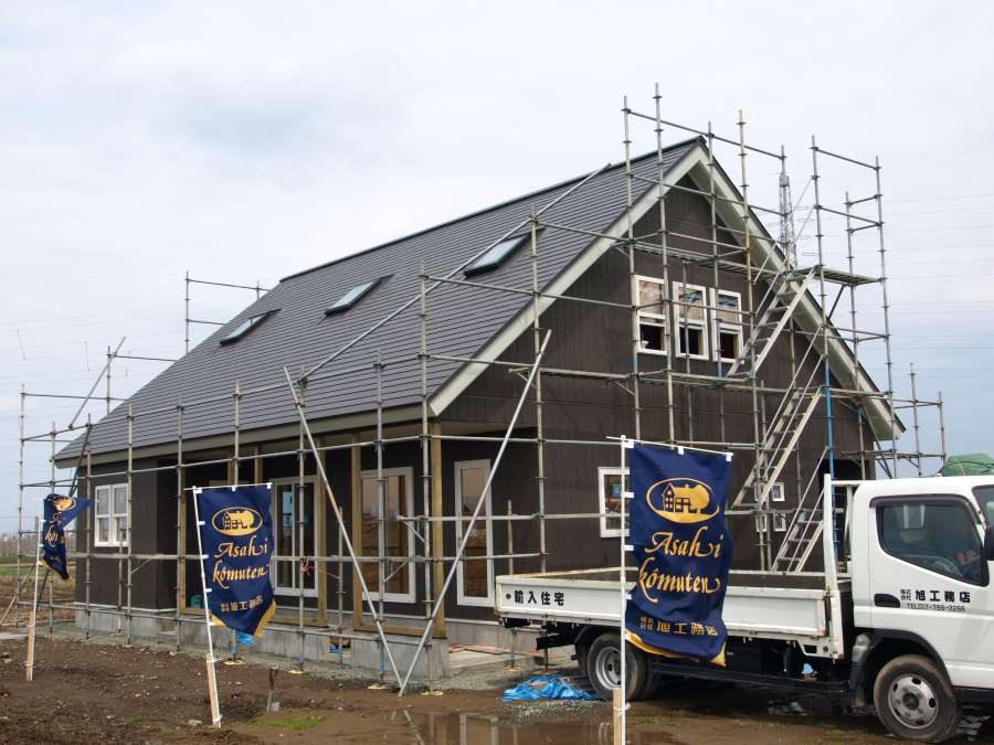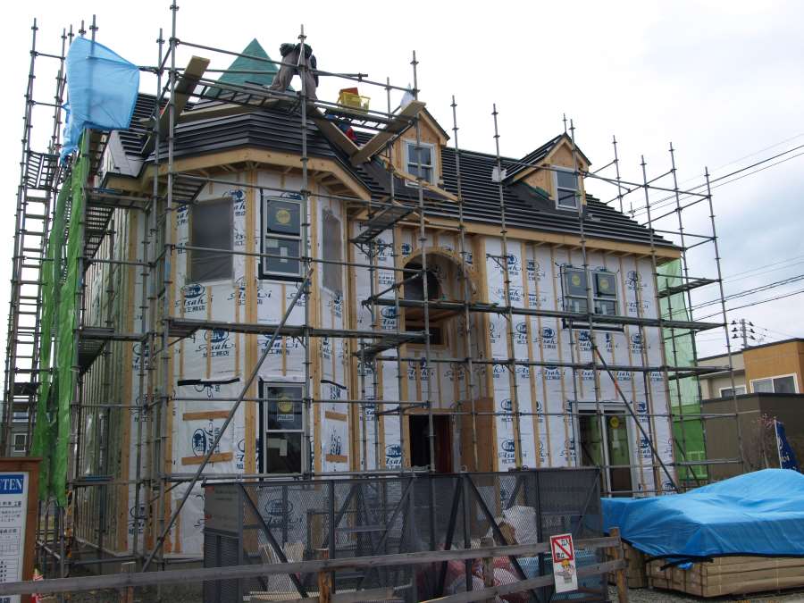 よくツーバィフォー工法は、プラモデルみたいに一気に組みあがる物だと
