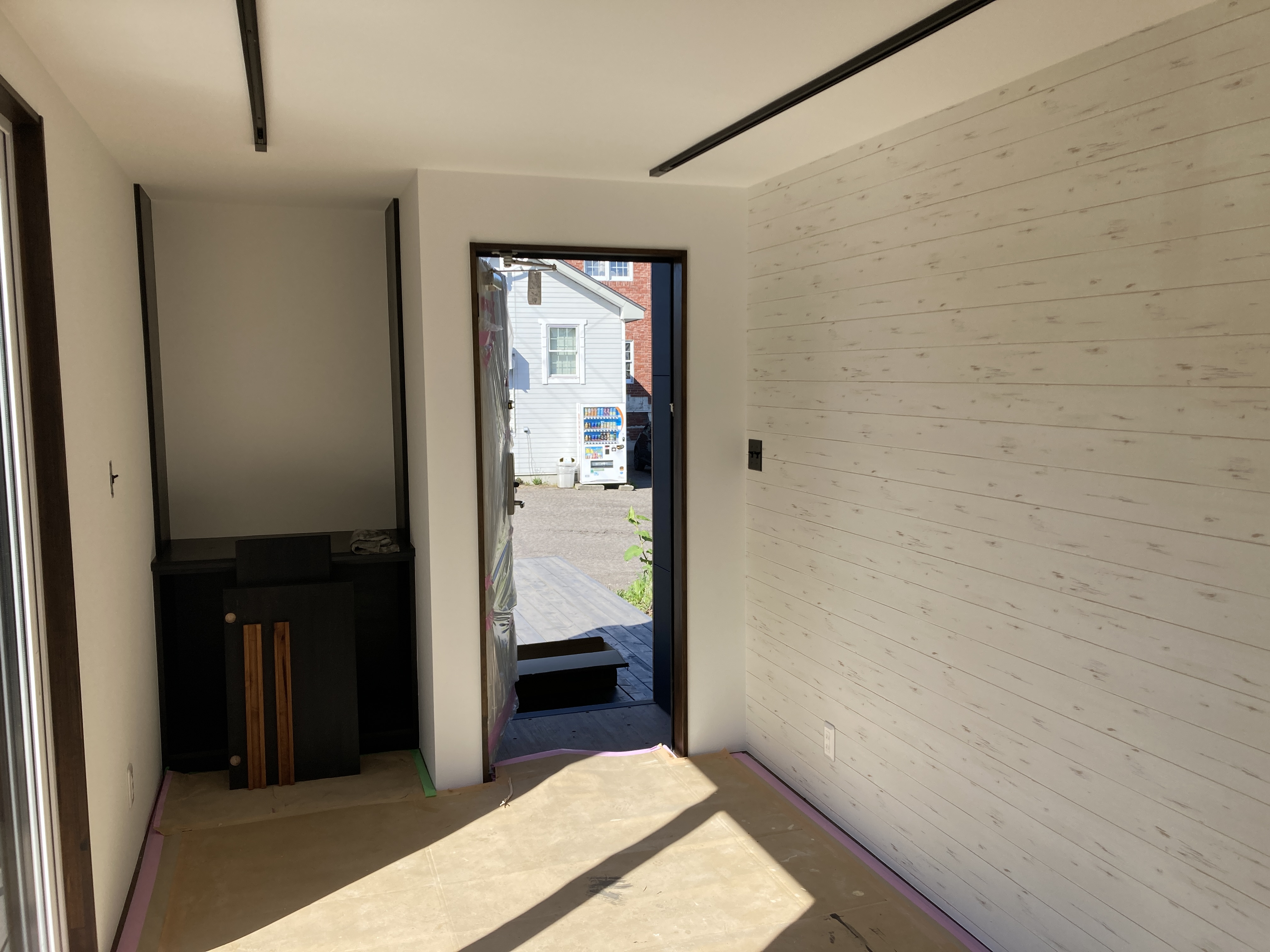 こんにちは。 建築課の濱田滉大です。 旭工務店の事務所に設置した20フィート(FT)コンテナでは、クロス(壁紙)工事が完了しました(^_^) いや、机もあるんかい(笑) 「家の構造工事」からスタートして、「断熱工事」→「フローリング工事」→「石膏ボード貼り」→「設備工事」→「クロス(壁紙)工事」ざっくり分けるとこういう感じで、進行していきます(^^)/(現場の状況によっては違ったり、なかったりする工事にあります)つまり、完成前大詰めの段階という事ですね!! ここまでは外部工事の話題が中心でしたが、内部工事も順調に進んでおります。そちらの工事が進んでいく様子も私のblogでお伝えしていきますのでお楽しみに! 旭工務店公式LINE@では直接のお問い合わせメッセージもお待ちしております。 家づくりに関しての気になる疑問から、具体的なお悩みまで、お気軽にご相談下さい