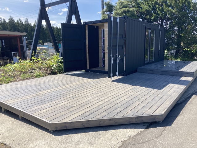 こんにちは。 建築課の濱田滉大です。 旭工務店自体はGW休業に入っていますが、私自身は事務所に来ています。というかいろんな業者さんを含めた人が動いているのであんまり休業期間っぽくないです(笑)そんなことはさておき、先日、旭工務店の事務所に設置した20フィート(FT)コンテナの「石膏ボード貼り」の段階がスタートしたことをお伝えしましたが、今回ウッドデッキが周りに設置されました! いや、コンテナ自体の色も変わってるー!?そうなんです!ウッドデッキの設置と塗装工事がほぼ同時に進行しています。私も伝える情報が多過ぎて大変です(笑)厳密に言えば外壁塗装→ウッドデッキの設置という流れです^^; 外壁をブルーからブラックに塗装することでかなり渋い仕上がりになりました(^_^)更にウッドデッキが設置されたことによって、完成度が大幅にアップしました。外部はほぼ完了したのでこれから内部工事が本格化していきます。皆さんにお見せできるのが今から楽しみです(^^)/私のblogでも経過はお伝えしていきますのでお楽しみに! 旭工務店公式LINE@では直接のお問い合わせメッセージもお待ちしております。 家づくりに関しての気になる疑問から、具体的なお悩みまで、お気軽にご相談下さい