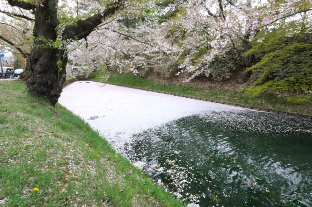 こんにちは。 建築課の濱田滉大です。 先日、OPENした「リスボン菓子店」さんにお邪魔したついでに弘前の方にも行ってきました。この時期は何と言っても弘前城の桜ですよね。とはいえ今年は開花がかなり早くいつもであればGW頃に満開を迎えるのですが、今年はすでに「満開済み」という咲いてるのか、咲いてないのか良く分かんない状態でした(笑) 一部、葉桜になっているところもありましたが、それでも私自身何年かぶりのかなりの迫力の桜が楽しめました。 そんな青森が誇る弘前城の桜ですが、2年ほど前まで新型コロナウイルスの流行により園内の入場規制が掛かっていたり、そもそもの来場者もかなり少ない状態でした。今年はそんな制限もなくなり、屋台が例年通り並んでいたりとお祭りの賑わいが本格的に戻ってきた気がします(^^)/ 更にこの時期ならではの景色としては、お城の外堀に桜の花びらが水面に浮かび、全国的にも珍しい景色を見ることが出来ます! まあ、私の場合は主目的は桜じゃなく、スタバだったりラーメンだったりするのですが(笑)