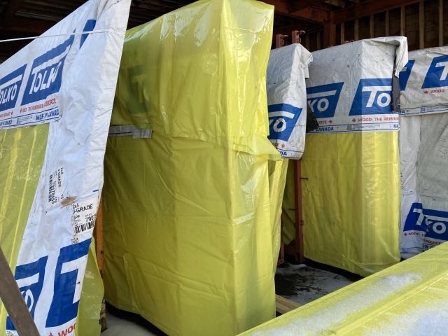 こんにちは。 建築課の濱田滉大です。 旭工務店の工場では、現場で組みたてるパネル(構造体)の搬出に向けた準備が始まりました! パネル(構造体)は、高さは2m以上、横幅も3~4mはある物のが多いので、大きさがよく分かると思います。冷静に考えると、家を構成する物なのである程度の大きさがあるのは当たり前と言えば、当たり前ですが^^; 通常の大工工事だと、冬の間は厳しいところもありますが、パネルの制作は工場の中でやれるので冬の間もバンバン進んでいきます(^_^)青森の場合、雪が降り過ぎて工場にたどり着けない場合もあります(笑) 高さは2m以上、横幅も3~4mもある物を運搬することになるので、大型のトラックが必要になります。さすがにその大きさが必要なトラックは社内ではないので、専門の運送業者さんにお任せすることになります(^^)/とはいえ、高さは2m以上、横幅も3~4mもある木の塊をそのまま運ぶのも大変なので、専用の金属の囲いにて運搬します!! この後、搬出されたパネルの組み立て風景等も引き続き、私のblogでお伝えしていきますのでお楽しみに! 旭工務店公式LINE@では直接のお問い合わせメッセージもお待ちしております。 家づくりに関しての気になる疑問から、具体的なお悩みまで、お気軽にご相談下さい