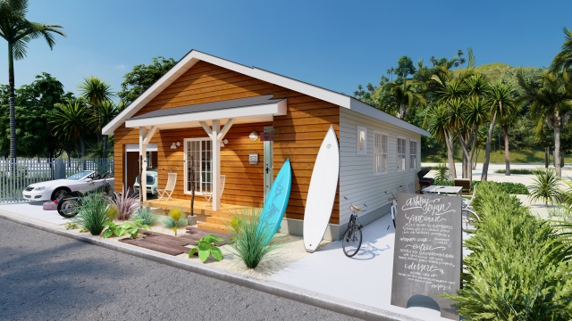 カリフォルニアの澄みきった青空とその下に広がるきれいな海を感じさせる平家「CALIFORNIA BASE」から待望のガレージ付きのプランが誕生しました。