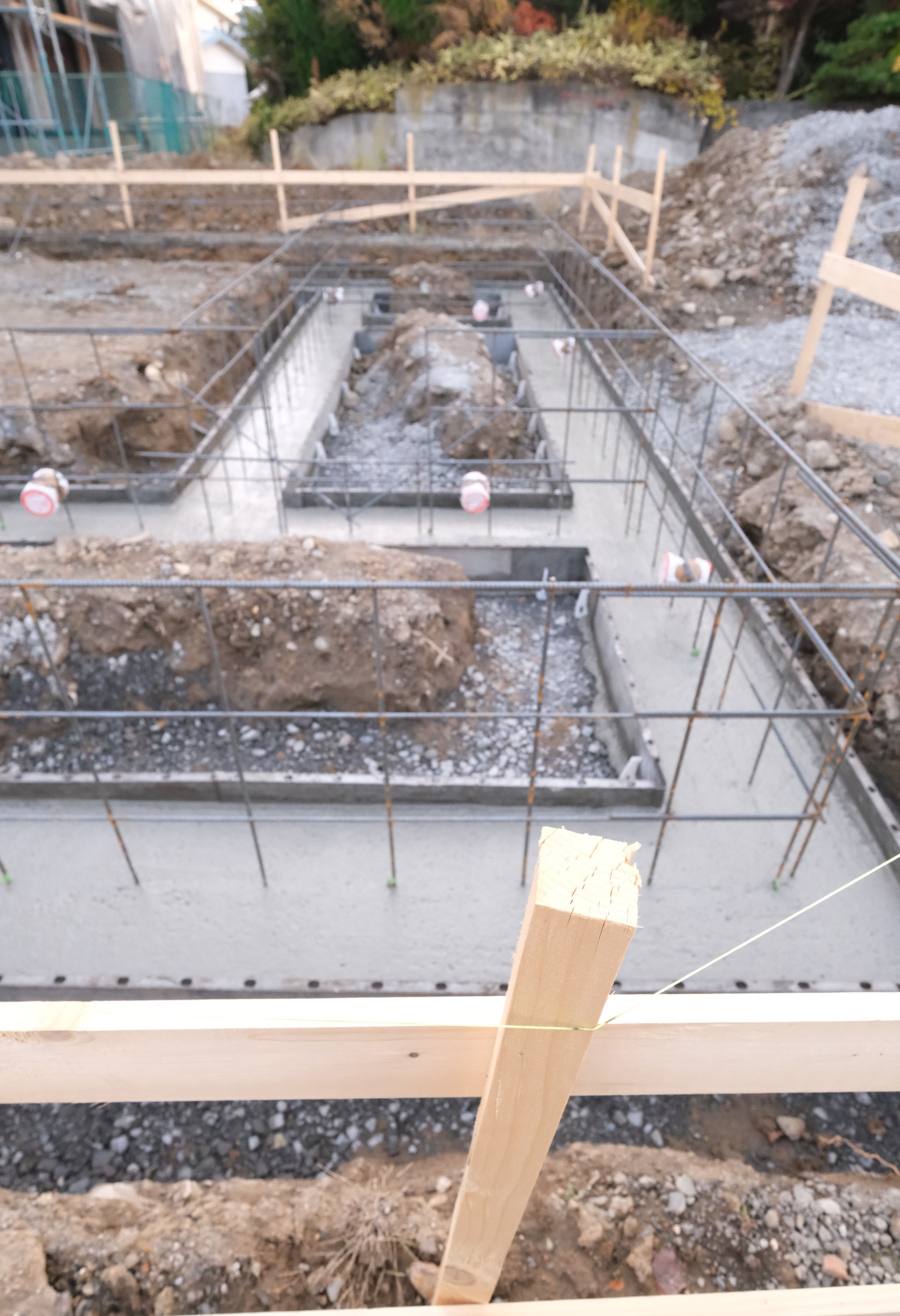 こんにちは。 建築課の濱田滉大です。 弘前の現場は、「基礎工事」が順調に進行しております。 写真は、基礎のコンクリートをささえる「鉄筋」と呼ばれるものを設置している状態です!!一般的に配筋工事と呼ばれる段階になります。 このタイミングで、鉄筋の間隔や長さ、正しく施工されているかを確認する(基礎)配筋検査と呼ばれる検査を受ける事になります!!この鉄筋は基礎のコンクリートを支えるものになるので、基礎の強度に大きく関わってくるんですね(^^)/ といってもあんまり見た目は変わりませんが(笑) 配筋検査後、いよいよコンクリートの流し込みを行います。なので基礎工事は「底→配筋工事→コンクリート」という形になります。基礎工事も底からスタートしていくんですね。 この後も、進行があり次第お伝えしていきますのでそちらもお楽しみに(^^)/ 旭工務店公式LINE@では直接のお問い合わせメッセージもお待ちしております。 家づくりに関しての気になる疑問から、具体的なお悩みまで、お気軽にご相談下さい