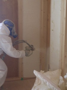 宇宙服みたいな服装をして作業している人、断熱工事屋さんです、名称:アイシネンと言います。