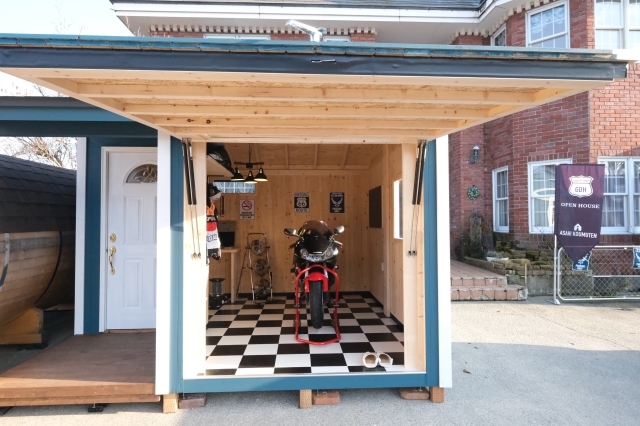 こんにちは。 建築課の濱田滉大です。 11月29日(土)〜30日(日)に開催される移・食・住の防災展でも展示予定の小屋は塗装工事も終わりまして、内装工事も完了しました! シャッターも開きました!内部はアメリカンダイナーな床や内装になっております(^_^) 木のぬくもりをしっかり感じられる空間です。内部には机や照明等も設置されています!バイクも設置されていて、小屋の雰囲気もばっちりです。 机や棚の上にもバイク等の備品も設置しています。全体的にスポーティーな雰囲気にまとまっています。飾られているのは多分ホンダのバイクなのですがここら辺はスタッフの私物なので詳細を聞かれても分からないです(笑)詳しいことはイベント当日にお尋ねください。 当日展示されるものは大体準備が終わりまして、見学される方を後悔させないクオリティーですので、11月29日(土)〜30日(日)に開催される移・食・住の防災展にぜひお越しくださいませ(^_^) 旭工務店公式LINE@では直接のお問い合わせメッセージもお待ちしております。 家づくりに関しての気になる疑問から、具体的なお悩みまで、お気軽にご相談下さい