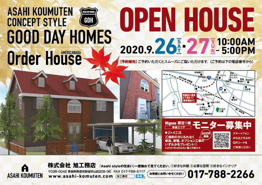 9月26日(土)、27日(日)の2日間でオープンハウスでお待ちしています。