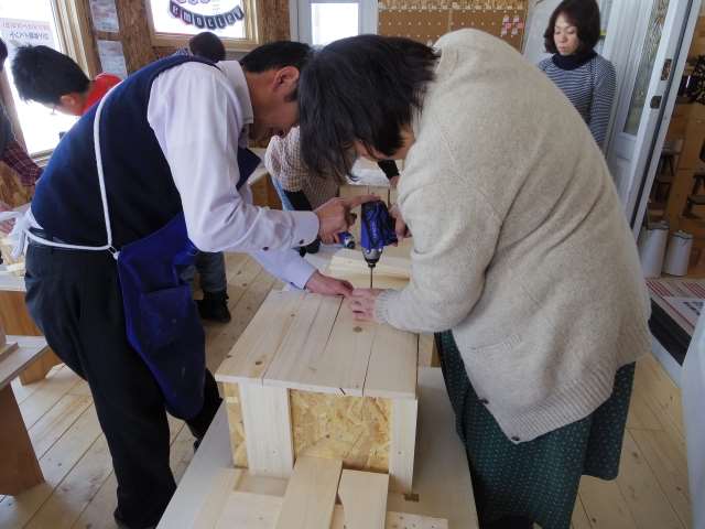 今回も若松講師の元、「収納ベンチ作成」に挑戦しました。