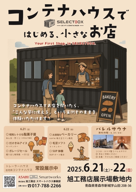 こんにちは。 建築課の濱田滉大です。 明日からのコンテナハウスではじめる、小さなお店イベントの準備を行っております(^^)/なんだか会場の準備を行うのも久々な気分ですね笑そして、今回初開催となるSUP体験のプールもいよいよ出てきました。 まさか旭工務店のイベントにおいて、プールに水をはる日が来るとは思いませんでした(笑)当日はちゃんと講師の方がついてパドルの使い方も教えてもらえますのでぜひお立ち寄りください。 チラシの中にあった昭和レトロな駄菓子屋は白いコンテナ内で行いますので、当日はそちらも覗いてみてくださいませ というか当日はバレルサウナやトレーラーハウスの展示等々、会場内で書ききれないほど色々やりますので(笑)各案内を参考にしながらお進みくださいませ。さあ、皆さんも参加したくなってきましたよね。今すぐご予約ください…というという宣伝でした(笑) ※すでに予約が埋まっているところもありますので、ご予約をお考えの方はお早めにお願いします コンテナハウスではじめる、小さなお店イベント 会場 青森県青森市新城字山田 208-36(旭工務店展示場OAKhills) 6/21(土) 10:00~16:00 昭和レトロな駄菓子屋(小学生以下無料) だけきみアイス(キッチンカー) SUP体験(SUPボード展示) 6/22(日) 10:00~16:00 お洒落なベーカリー(corie) 毛豆ソフト(キッチンカー) SUP体験(SUPボード展示) 「いつか自分のお店を持ちたい」——そんな夢を、もっと身近に。 話題のコンテナハウスでお店を開いたら「こんな風に使える」という実例そのまま体験いただけます! ご参加を希望される方はコンテナハウス SELECTBOX見学ご予約カレンダーからぜひお申し込みください! さらに去年大好評だったキッチンカーにも「だけきみアイス」、「毛豆ソフト」にもご出店いただきます。曜日ごとに出店者も変わりますのでご家族やご友人と是非ご参加ください! 旭工務店公式LINE@では直接のお問い合わせメッセージもお待ちしております。 家づくりに関しての気になる疑問から、具体的なお悩みまで、お気軽にご相談下さい