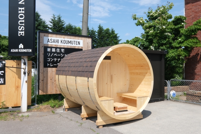 こんにちは。 建築課の濱田滉大です。 制作中の新作バレルサウナですが今週末のイベントに向けて、展示場側に移動してきました(^^)/ MAX6名定員(推奨4~5名)なのでめちゃめちゃ迫力がありますね。外側にはベンチもあるので普段展示している物よりもかなり長いです(^_^)そのおかげで通りかかる人たちから「なんだこれは!?」とびっくりされています。 中のヒーターも初の電気ストーブを使用します!とはいっても、現在内部の方は工事中なので見学できるタイミングになり次第お伝えしますのでぜひお楽しみに! 旭工務店公式LINE@では直接のお問い合わせメッセージもお待ちしております。 家づくりに関しての気になる疑問から、具体的なお悩みまで、お気軽にご相談下さい