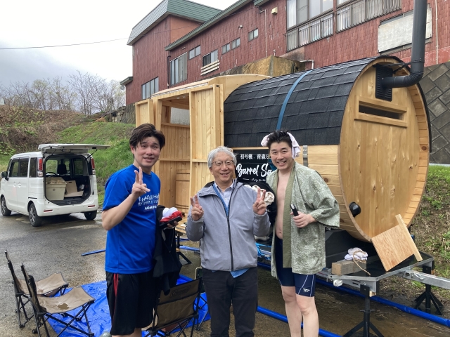 こんにちは。 建築課の濱田滉大です。 少し時間を戻しまして、先日ハッピィー百沢温泉の1周年イベントに旭工務店のバレルサウナが出店してきました!初の弘前方面の出店という事で道中は若干不安でしたが、無事現地まで到着しました(^_^) 道中は順調だったのですが、現地で水風呂用の水の確保に悪戦苦闘することになり、ハッピィー百沢温泉のスタッフの皆さんのご協力もありなんとかすることが出来ました。参加された皆様にはご不便をおかけしましたm(__)mしかし、ここで思いついた「水のかけ流し」方式は参加の皆様にも意外にご好評だったので今後の旭工務店のイベント等でもパクリたいと思います(笑) 今回は1周年イベントに参加されていた方の当日飛び入り参加もありつつ、最後にはあべこうじさんや先川栄蔵さんや支配人のOGAらのハッピィー百沢温泉チーム(こういうくくりでいいのかは分かりませんが笑)の皆さんにもバレルサウナを堪能していただきました(^^)/あべさんの「最高!」の声も響いていました(笑) なんだったらどんな参加者よりも楽しんでいたかもしれません(笑)キッチンカーやトークライブ等も盛り上がっていて多くの方の笑い声が響くとても良いイベントでした!ご参加いただきました皆様誠にありがとうございました。さらに今回お誘いいただきましたあべこうじ様、支配人のOGA様並びに青森の小野様誠にありがとうございました。