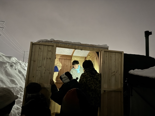 こんにちは。 建築課の濱田滉大です。 という事で、前のblogでお伝えしていましたがABAの「ハレのちあした」にて旭工務店のバレルサウナをご紹介していただきました! リポーターを務めるのは青森県民にはお馴染みのあどばるーんの小野さんです。事前の打ち合わせもかなりしっかり行いました。実は小野さんはご自身のYouTubeチャンネルでもサウナの発信をされていて、以前プライベートで旭工務店のバレルサウナを見学に来られたこともありました(^_^)サウナに関しては、勝手知ったるところなので私たちの方ではほぼ何もすることがありませんでした(笑) 中継が始まった時間帯は暗くもなってきて、うちのサウナだけではなく会場のツリーやヒュッテにもとてもきれいな光景でした(^^)/ サウナと同じく貸し出していた12ftのコンテナの紹介もしていただきまして、とても素晴らしい映像になったのではないでしょうか…という自画自賛(笑)中継の締めは打ち合わせ時点で「サウナに入った後は雪に飛び込みしかない」という芸人根性とサウナーとしての楽しみ方を知り尽くした素晴らしい締めでした(笑) ちなみにテレビ上でどうなっていたかはまったくわからないので帰ってから確認します(笑) 旭工務店公式LINE@では直接のお問い合わせメッセージもお待ちしております。 家づくりに関しての気になる疑問から、具体的なお悩みまで、お気軽にご相談下さい