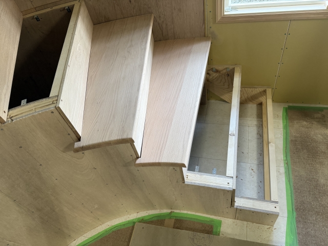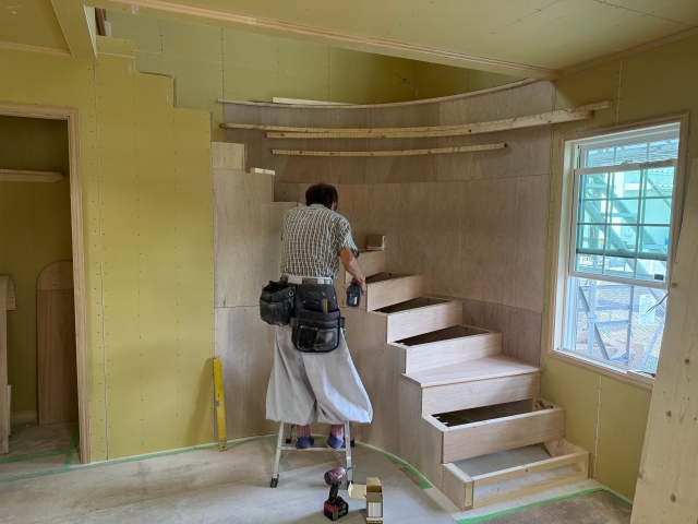 こんにちは。 建築課の濱田滉大です。 現在進行中の新築の現場は、クロス(壁紙)工事が進んでおります^_^ クロス(壁紙)工事と塗装工事が同時進行しています!またしても私が行かないうちに進んでおります(笑) ちなみに内部工事は、「家の構造工事」からスタートして、「断熱工事」→「フローリング工事」→「石膏ボード貼り」→「設備工事」→「クロス(壁紙)工事」ざっくり分けるとこういう感じで、進行していきます(^^)/(現場の状況によっては違ったり、なかったりする工事にあります)つまり、完成前大詰めの段階という事ですね!! サーキュラー階段の方もほぼ完成しています(^_^)いよいよ工事も大詰めを迎えていますので、これからの様子も私のblogでお伝えしていきますのでお楽しみに! 旭工務店公式LINE@では直接のお問い合わせメッセージもお待ちしております。 家づくりに関しての気になる疑問から、具体的なお悩みまで、お気軽にご相談下さい