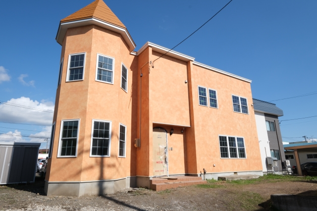 こんにちは。 建築課の濱田滉大です。 blogにも掲載している弘前の現場ですが、外部の足場が外れましていよいよ建物がお披露目になっております(^^)/ オレンジ色の塗り壁が青空に映えます!!さらに建物の規模感が大きいので存在感があります(^_^)通行人の方も「なんだろう....」と見られております(笑) 中の方も前回お伝えした壁紙(クロス)工事も一部を除いて、完了となっています。今回の建物の特徴となる六角形のところも 机もついて、照明器具との調和のとれた空間になっていますね。これで照明がついているればさらに最高ですが、そこまでしちゃうと私のblogの次のネタが無くなるので(笑)次回のblogをお楽しみに(^-^; 旭工務店公式LINE@では直接のお問い合わせメッセージもお待ちしております。 家づくりに関しての気になる疑問から、具体的なお悩みまで、お気軽にご相談下さい