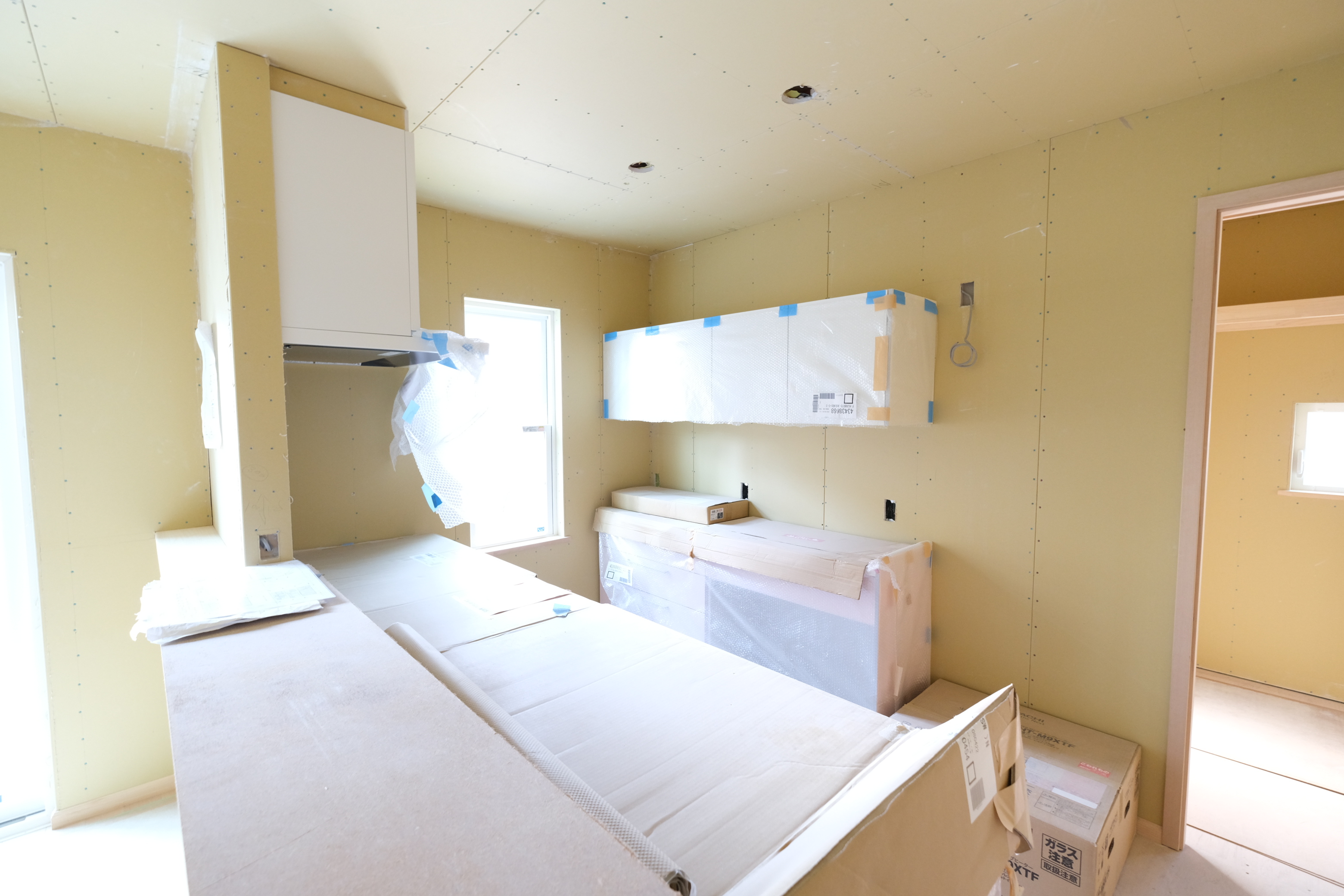 こんにちは。 建築課の濱田滉大です。 絶賛内部工事の浪館前田の現場ですが、先日キッチンの搬入が終わっていました。 扉の木目調もいい感じで…アレ!天板がない!? そうなんです!システムキッチンの天板(専門的にいうとワークトップって言います)下の収納部分から取り外しが可能(一部できないものもあります)なんですね(^_^)意外と知らないた方も多い印象ですが。そもそも今回、天板がないのはオプション仕様の天板にしたので搬入が遅れているってだけです(笑) 他にも洗面化粧台は天板だけという商品も多いので、オリジナルで造作される方も多いです(^^)/ まあ、そんなところに情熱をかけているのも旭工務店くらいですが(笑) という事で、一部天板はありませんが(笑)浪館前田の現場の工事は順調に進行しています。この後、天板やもろもろが進んだ様子もお届け予定ですのでお楽しみに! 旭工務店公式LINE@では直接のお問い合わせメッセージもお待ちしております。 家づくりに関しての気になる疑問から、具体的なお悩みまで、お気軽にご相談下さい