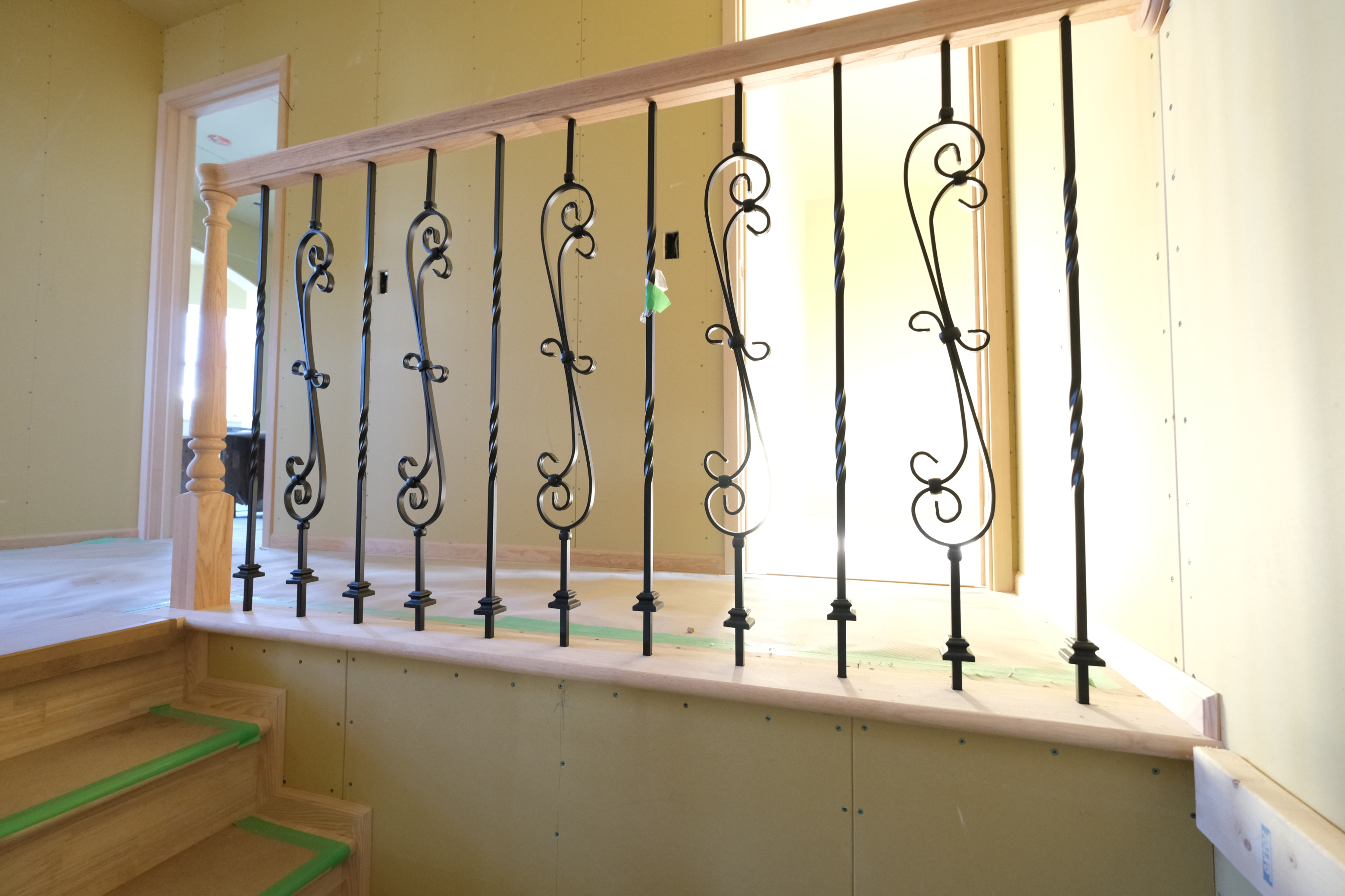 こんにちは。 建築課の濱田滉大です。 小柳の現場では階段の造作が完了しました!! 今回は手すりの飾り部分はアイアンにて作成されています。黒のアイアンがカッコイイですね(^^)/日が当たり過ぎで若干、白飛びしてますが(笑)ちなみに手すりの飾り部分は木製で作成することも出来ますので、ぜひ旭工務店までご相談くださいね。 内部工事は、「家の構造工事」からスタートして、「断熱工事」→「フローリング工事」→「石膏ボード貼り」→「設備工事」→「クロス(壁紙)工事」ざっくり分けるとこういう感じで、進行して行きます(現場の状況によっては違ったり、なかったりする工事にあります)ちなみに今はどこらへんかというと設備工事が終わって、クロス(壁紙)工事がスタートする前という事で大分後半に入っています!(実をいうとこの後も設備の工事自体はあります笑) 階段も完成しているので私の苦手な梯子移動がありません笑そういう事もあり(?)次の段階に入り次第、そちらも問題なくお伝え出来そうなのでお楽しみに!