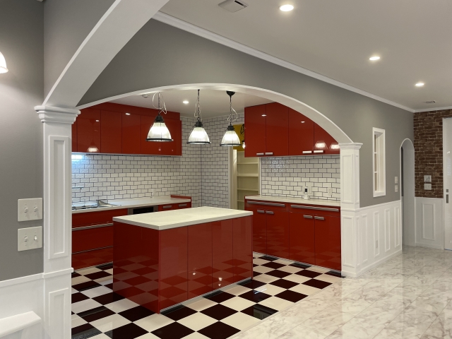 こんにちは。 建築課の濱田滉大です。 これまで私のblog等には掲載しておりませんでしたが、市内の「アーリーアメリカン」の現場が完成しました!!今回blogにて初公開しようと思います。 白を基調とした外観がオシャレですね(^_^)その中で、赤色の屋根がひときわ目を引きます。(アーリーアメリカンなんだから「ホワイト」と「レッド」という言い方が正しいのかもしれませんが笑) 内観もかなりアーリーアメリカンがイメージする内観に沿っている形でして キッチン周りもアメリカンで統一されており、照明もお施主様自ら選んだというこだわりの照明になっております(^^)/チェッカー柄の床も上手くアクセントになっていますね。 チェアやテーブルもアメリカのショップのような仕上がりとセッティングとなっております。(私はアメリカ行ったことはないんですが笑)内観も外観もイメージの統一が図られているのが素晴らしいですね(^_^) という訳で、お施主様のこだわりが随所に詰まったアーリーアメリカンのお家でした。旭工務店が誇るアーリーアメリカンの家は何回見ても素晴らしい仕上がりとなっております! Y様、写真の掲載のご協力、誠にありがとうございましたm(_ _)m 旭工務店公式LINE@では直接のお問い合わせメッセージもお待ちしております。 家づくりに関しての気になる疑問から、具体的なお悩みまで、お気軽にご相談下さい
