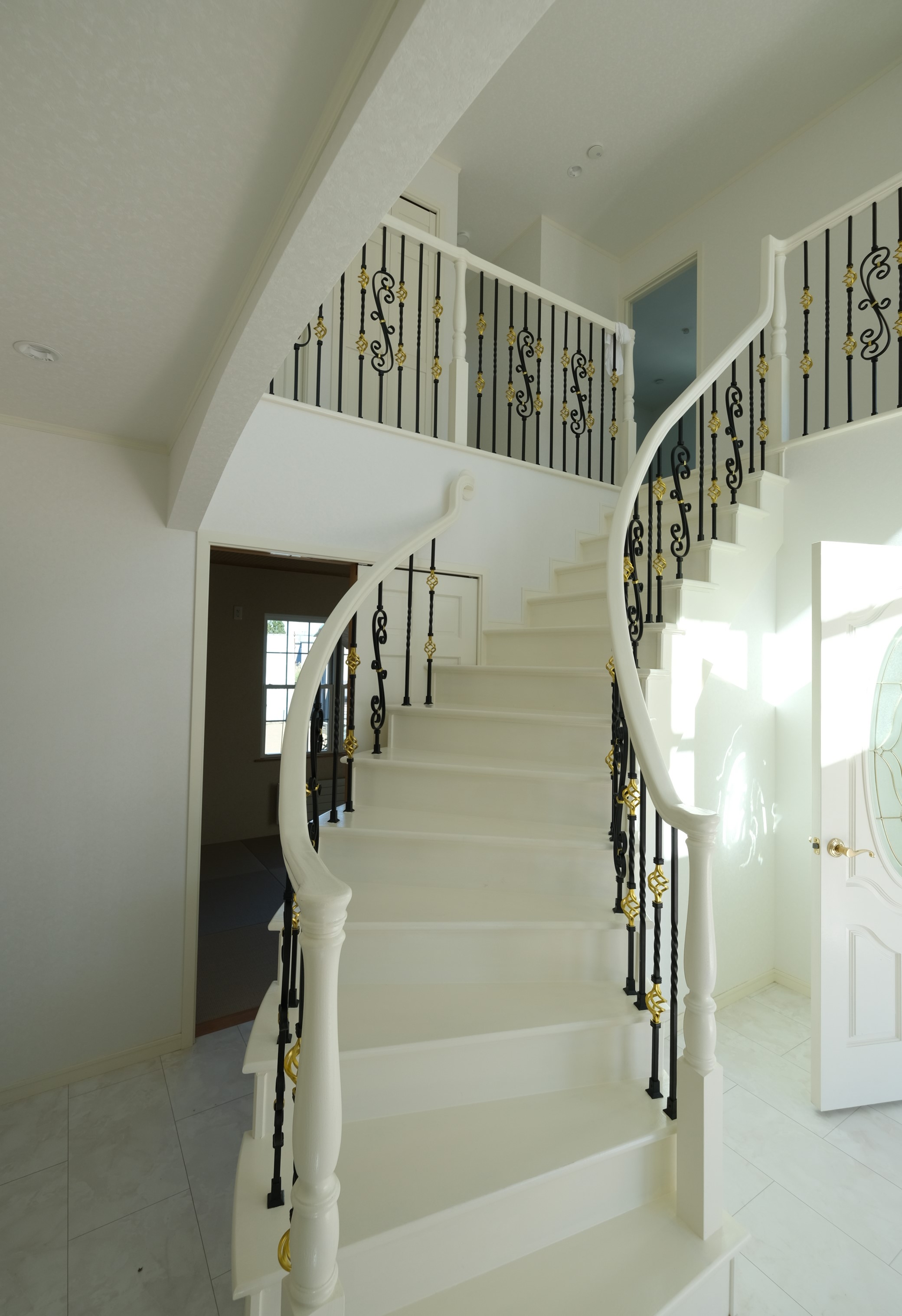 「緩やかな曲線を描くサーキュラー階段がある2階建ての家」 OPENHOUSE