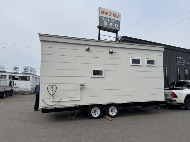こんにちは。 建築課の濱田滉大です。 先日のblogにて、トレーラーハウスの現地への設置と運搬の様子をお伝えしましたが、本日現地の様子を確認してきました(^_^) おおっ!なんだかいい感じ(^^)/えっ!いつも現地に行くのが遅い?そういわれても笑こちらのトレーラーハウスはオーナー様のご厚意により見学と掲載を快く許可してもらいまして、私のblogだけではなく先日のイベントでも多くの方にご見学していただきました。H様誠にありがとうございますm(__)mちなみに今回は工事中の仮住まい的な使い方をしてもらっております。実際にトレーラーハウスで生活した方のご意見やご感想をいただいて今後にフィードバックしていきたいと思っております! やっぱり事務所にあるのと現地にあるといつもと違う表情ですね(^^)/この後は必要な電気や水道等の工事を行って…という形で進んでいきます。 旭工務店公式LINE@では直接のお問い合わせメッセージもお待ちしております。 家づくりに関しての気になる疑問から、具体的なお悩みまで、お気軽にご相談下さい