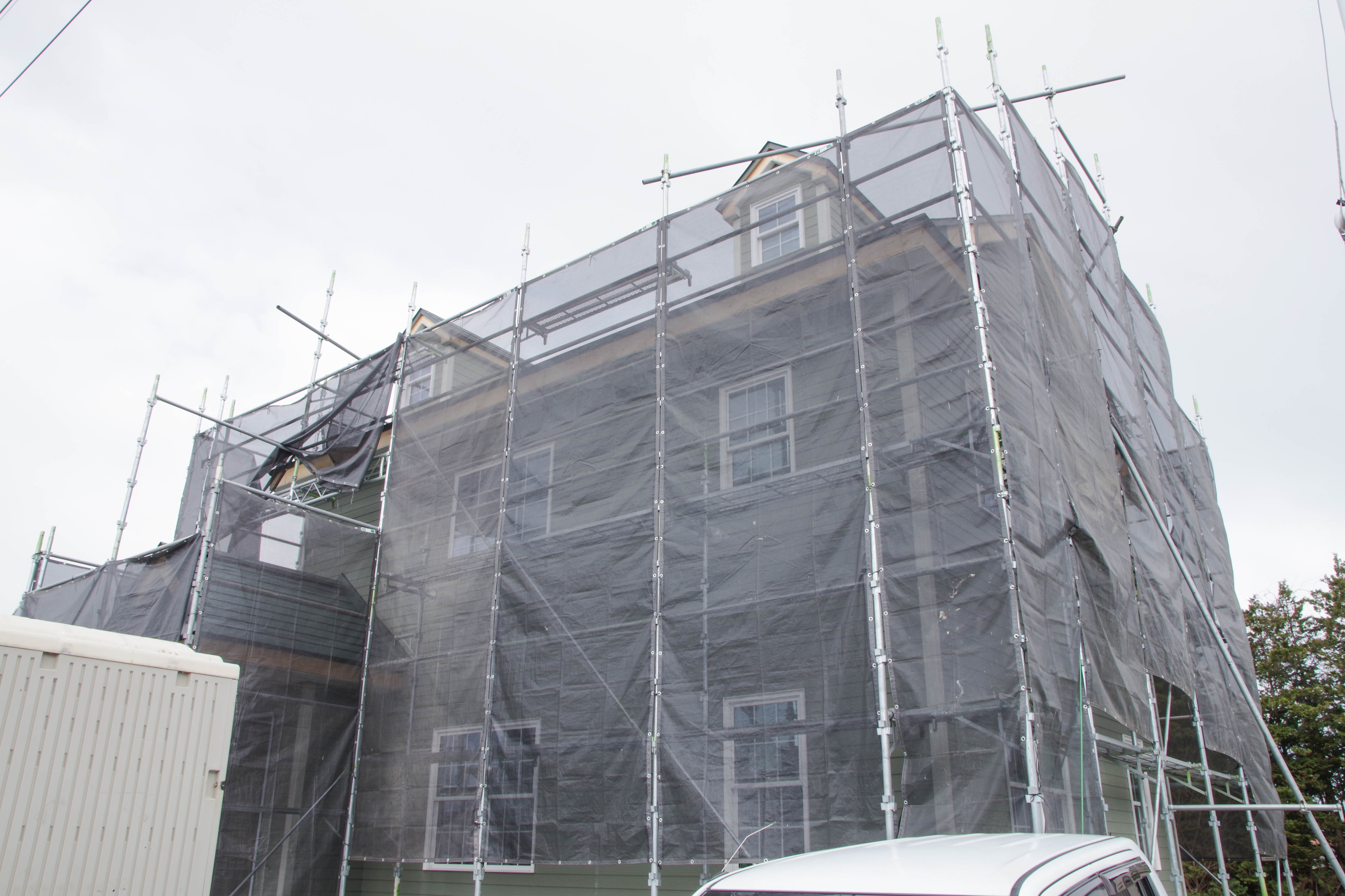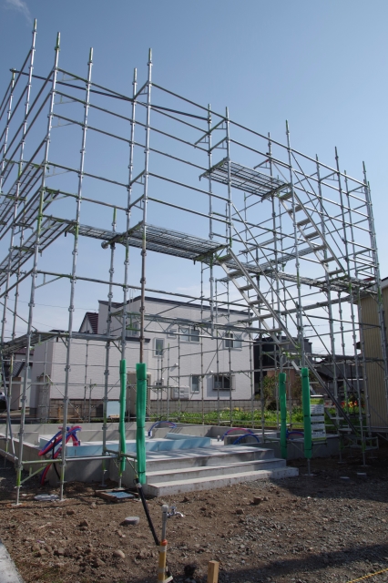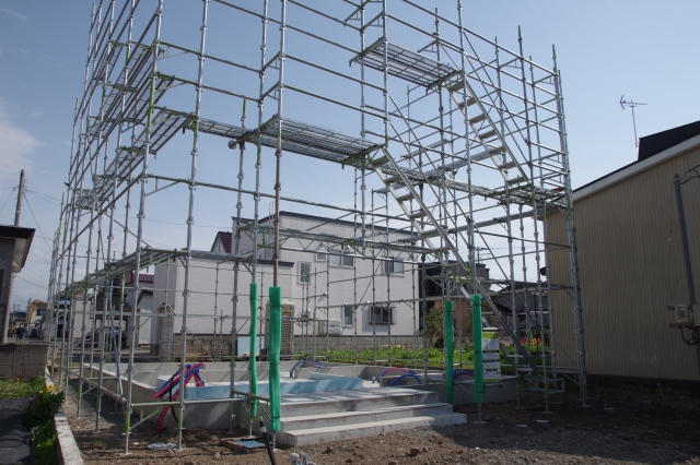 こんにちは。 建築課の濱田滉大です。 GWも終わりまして、いよいよ本格的に仕事も始まっていきます(^^)という事で現場の方も進んできます!その一つが度々登場している浪館の現場になります。 基礎の段階も終わって、足場の設営も無事終了しました(^_^)この後、土台敷き(基礎コンクリートの上に土台等を設置していく作業の事)→上棟工事(実際の建物の基礎となる構造部分をくみ上げていく工事の事)と続いていくのですが、こんな時大変なのが「天候の変化」です!!なぜかというと上棟工事の際はクレーン等で構造部分のパーツを持ち上げて移動したりするのですが、今日みたいな強い風だと単純に上げるのも大変です(汗)そもそも足場の上で工事するのにも強風の日は大変です。(私だったら絶対に登りません笑) その為、工事をする日程をずらしたりと対応が大変です。ただ天気ばっかりはどうしようもない事なので天候が変わりやすいこの時期は、昔の漫画で見た三国志の孔明のように「天気が良くなるように祈祷する」ぐらいしか対策はありません(笑)(それが対策と呼べるかも疑問ですが(^^;) ある程度、天候が悪くなっても大丈夫なように余裕があることがほとんどですのであれ程度は安心して見守っていただければと思います。