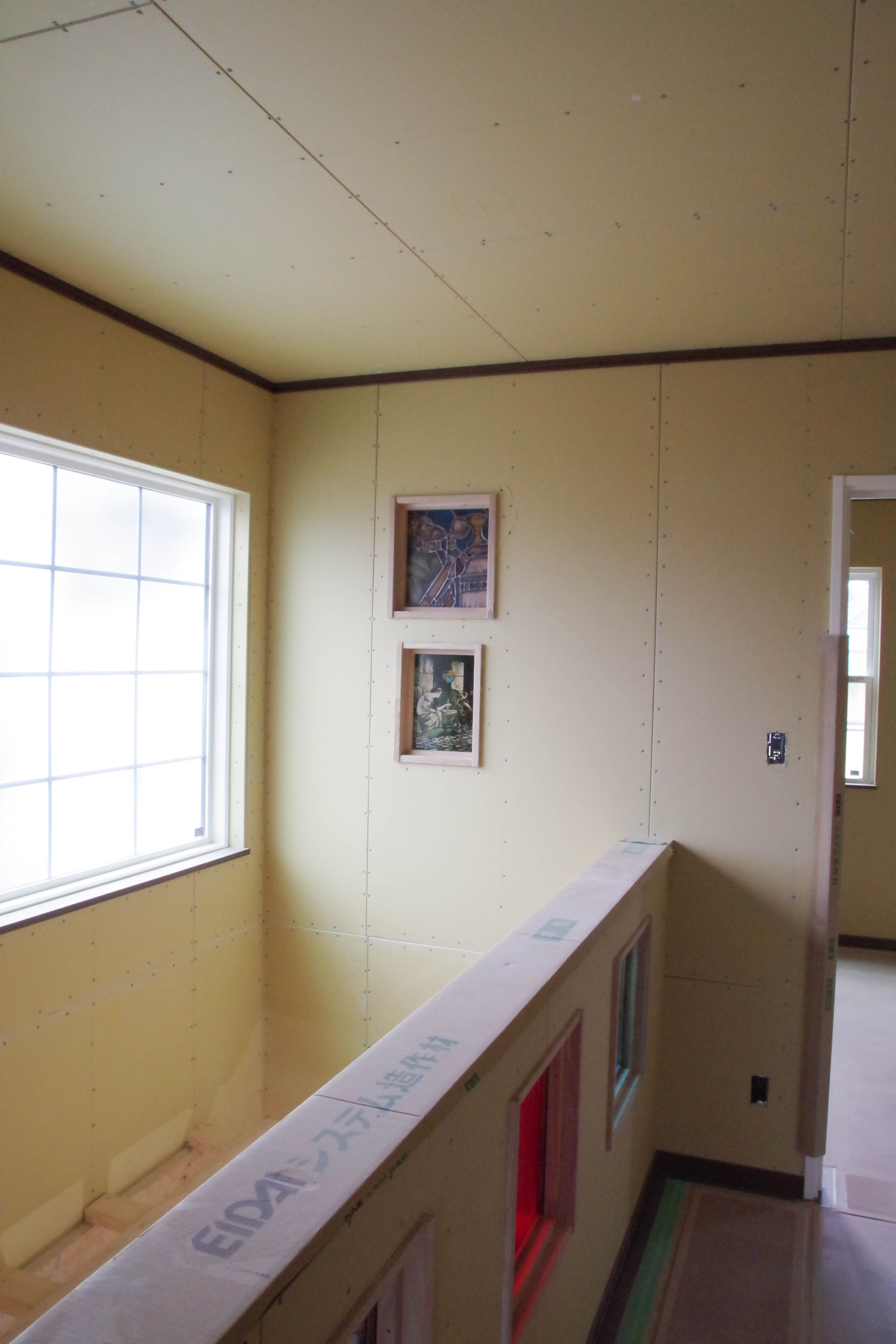 こんにちは。 建築課の濱田滉大です。 今日は久しぶりとなる勝田モデルハウスの情報をお届けします! 塗装工事が徐々に入ってきておりまして、木の枠が日に日に仕上がってきています!色が付くと一気に完成に近づいて感じがしますね(^_^)ここでもう一つ注目してほしいのが、中央に見えているボード(壁や天井を作るための材料)を止めるためのビスがほぼ一直線に美しく留まっている事なんです!! DIYイベントにご参加された方はよく分かるかと思いますが、連続でビスをなるべく一直線に止めるのって結構大変なんですよね。なのでこうやって美しくそろっているのは旭工務店の大工さんの腕がいい事の証明になるわけなんですね!(熱い自画自賛のような感じもしますがたまには笑)大工さんの腕の良さってこういう細かいところにこそ表れてくるんです(^^)/しかも、これはモデルハウスのみではなく、旭工務店の現場であればどこでも当たり前のことに行われていますからね。 という感じで、勝田のモデルハウスは色々と美しく仕上がっている事をお伝えしました!ここまでさんざん自慢してきましたが、この後壁紙(クロス)が貼られるので、完成後はこの光景が見れないという事もお伝えしておきます(^^;