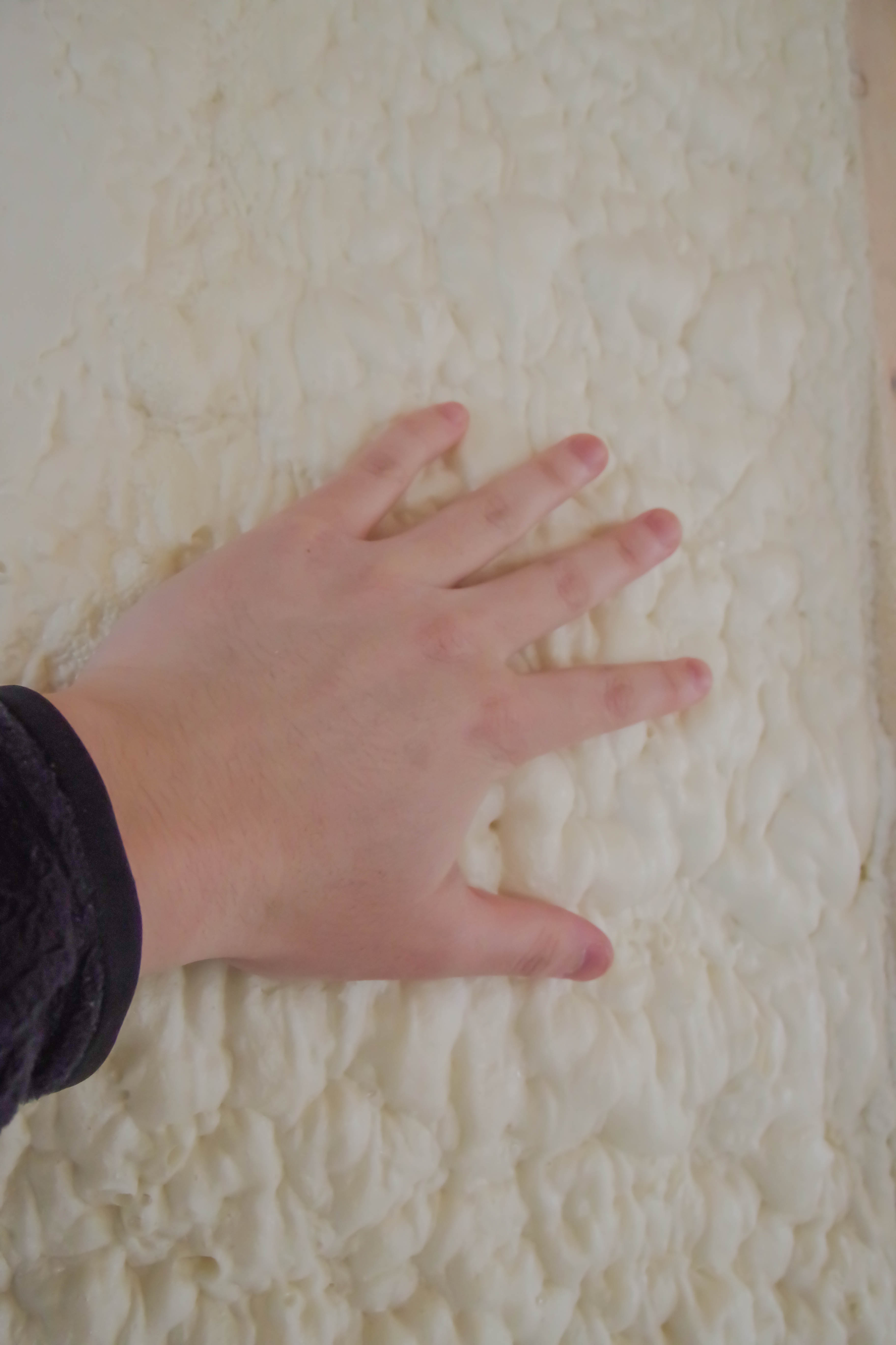 発泡性のものだと施工してから膨らむので隙間が開きづらい事と触ってて気持ちがいいという知られざるいいところがあります。