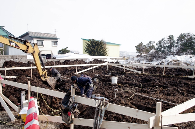※何故、(遠くから)とわざわざ記載したかというと、地盤改良工事や基礎工事では大型のトラックやシャベル、クレーンといった重機が現場を頻繁に出入りするので、危険ですので見学する際はある程度距離を持って見学してくださいね(^_^)