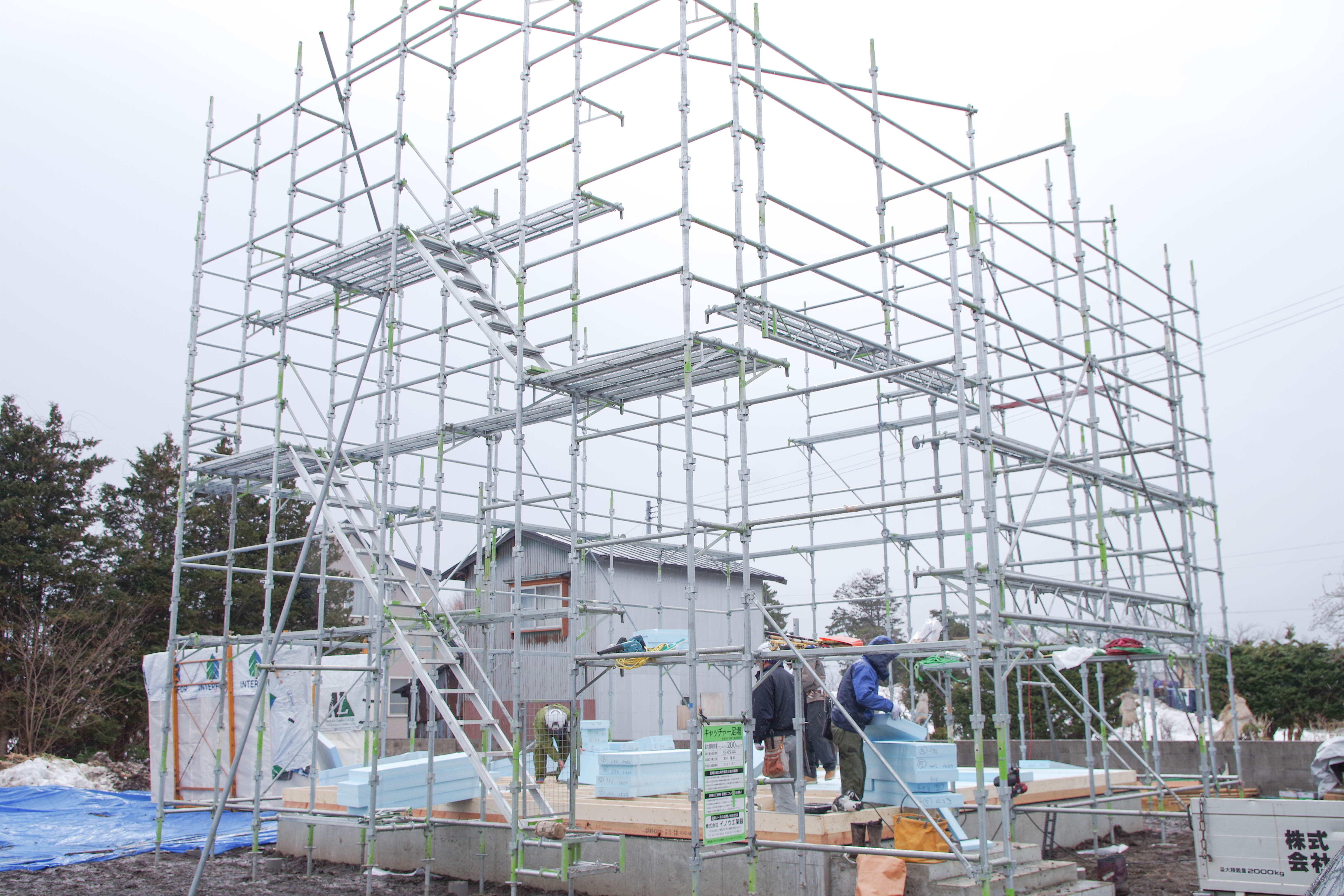 こんにちは。 建築課の濱田滉大です。 藤崎の現場では、足場と基礎工事が終わりまして、「土台敷き」の工程に入っています!