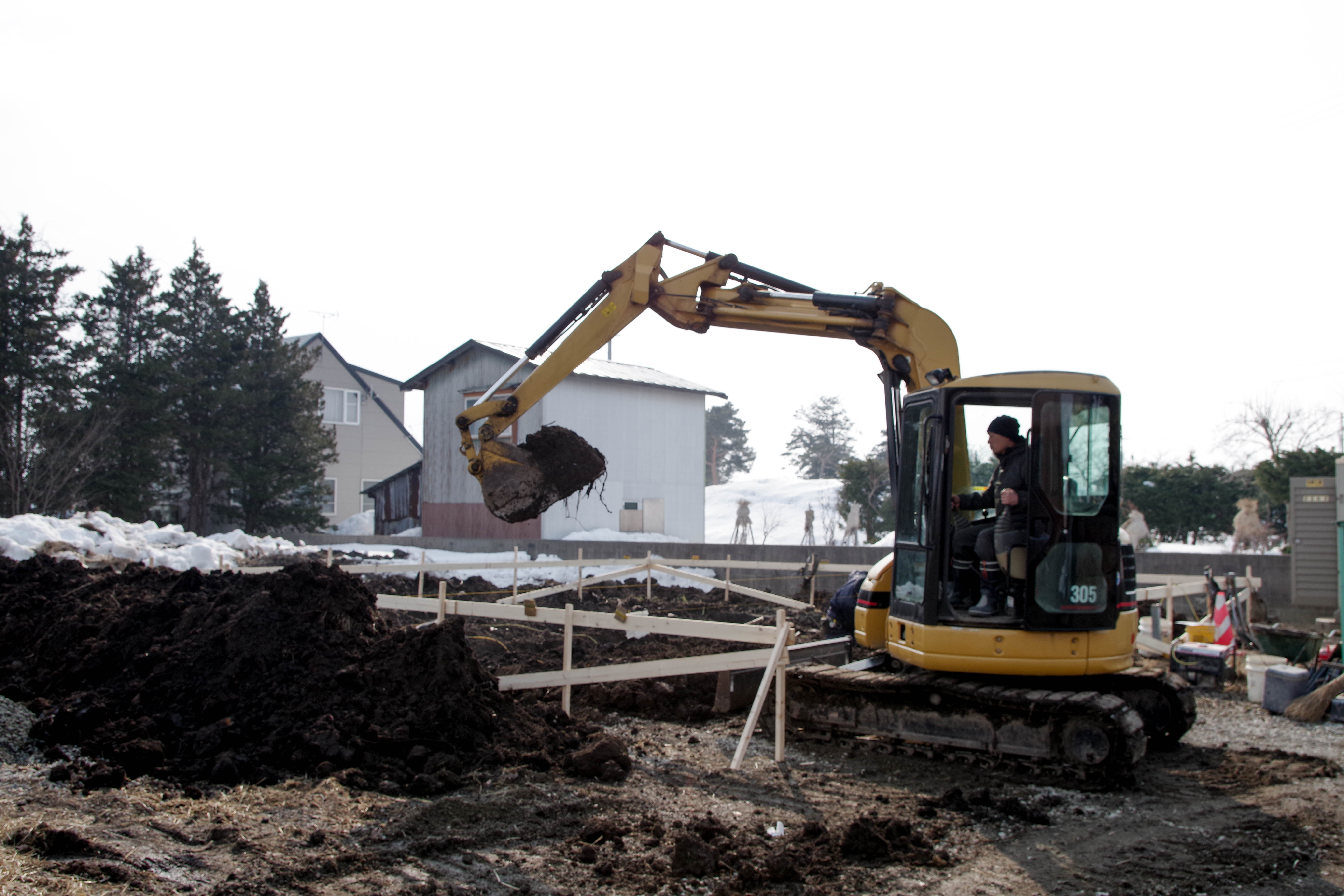 私の残念な報告はここまでにして(笑)藤崎の現場の方は地盤改良工事(建築物、橋梁などを地盤上に構築するにあたり、安定性を保つため地盤に人工的な改良を加えること)が終わりまして、基礎工事の段階に進んでおります!!