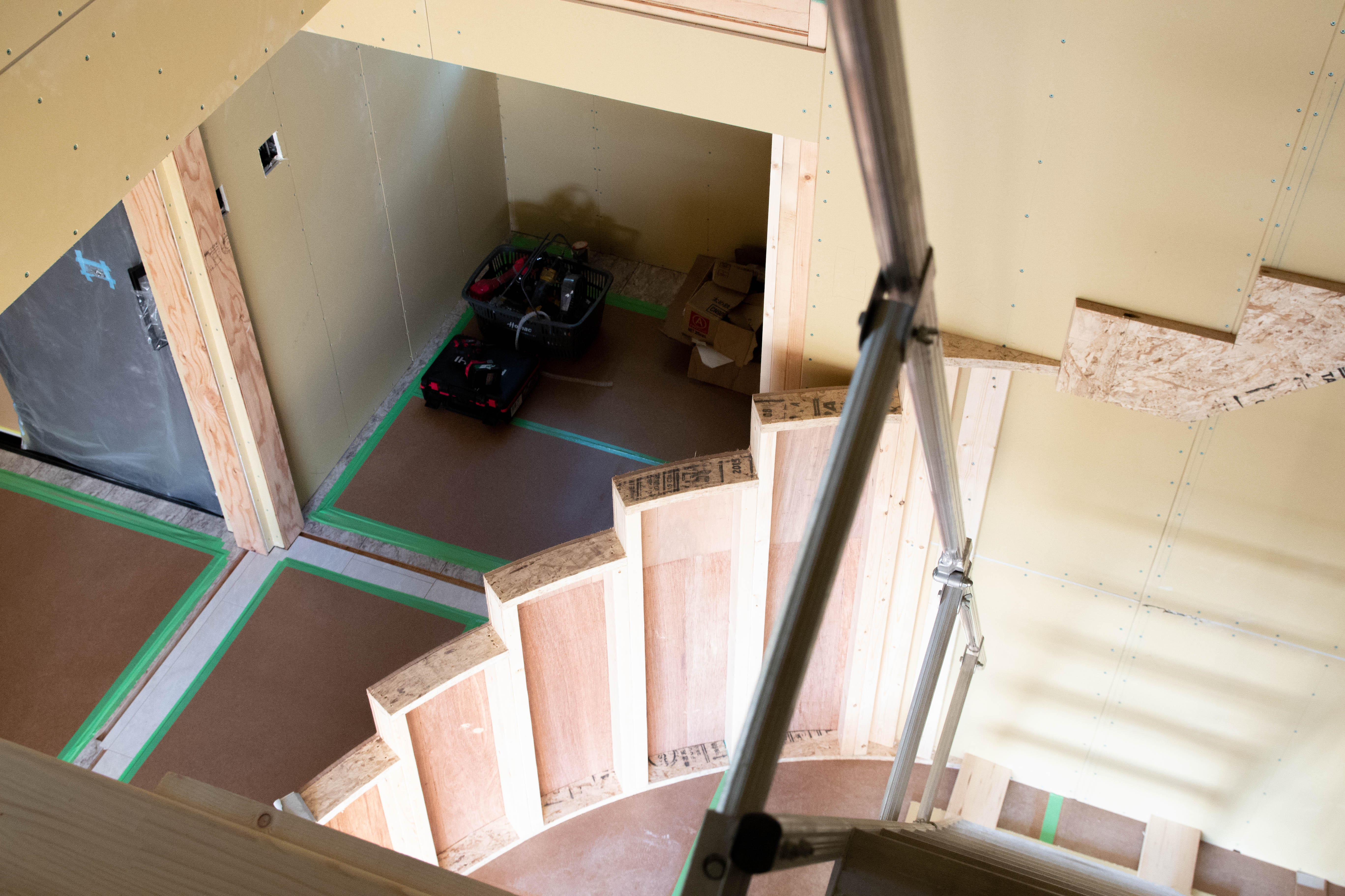 ちなみに現場の階段設置予定場所は今のところ、こんな感じになっています。ここから階段が付くとどのように仕上がるかお楽しみに!