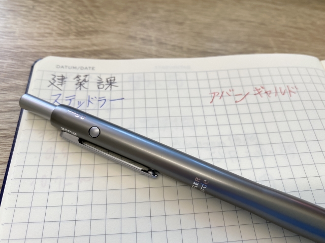 こんにちは。 建築課の濱田滉大です。 土曜日という事で、個人的なことをblogにしたいと思います(いつもそうでしょと言われれば返す言葉もないんですが笑) 普段、私はメモ用としてボールペンを持ち歩くことが多いのですが、中々いい物に巡り会う機会がありませんでした。そんな時に出会ったのが、ドイツのSTEADTLER(ステッドラー)社の「アバンギャルド」でした。 アバンギャルドは「3色+シャープ」の多機能でありながら、非常にスリムで持ち運びがしやすい物でした(^^)/言うことなし…と思ったのですが、意外な欠点がありました。それは「純正のインク芯だと書き始めに文字がかすれたり、文字が薄めになる」ということでした(^^;このまま我慢しても良かったのですが、このボールペンには「4C規格」という共有規格が使われているらしく、どうやら他社製品との入れ替えが可能ということで試してみました! ちなみに、建築工事に使われる木材やコンクリートといったものにも、指定建築材料としての規格として「JIS」とか「JAS」とか呼ばれる物があります。 という申し訳程度の建築要素(笑) 話題を戻すと、まずは純正の芯(黒・青・赤)を引っこ抜いて外し、シャープペン芯はそのまま残しておきます。 交換用の芯は「ジェットストリームプライム 」を使用しました。やっぱりこういうのは国産ですね(^_^) あとは、抜いた色のところに同じ色の替え芯を入れていくだけです。思ってたより簡単で5分とかからずに作業は完了しました。でその作業の結果、 上記のような、文字がかすれたりすることがなくなり、そこまで筆圧をかけずにスルスル書けるようになりました(^_^) という事で、特に書き味を気にする必要もなくなったので(メモが必要な)電話等でのお問い合わせもバッチリ……と思ったのですが、今日はそういったお問い合わせは入ってませんでした…というオチです(笑) 旭工務店公式LINE@では直接のお問い合わせメッセージもお待ちしております。