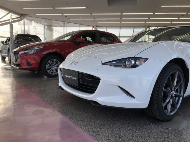マツダといえば、という感じのロードスターも飾ってました!!いつかはこれを現金一括払いで買えるようなビックな男になりたいものですね。今調べたら、270万から350万くらいらしいですね。え?、現金ではなくローンの方で検討したいと思います^^;