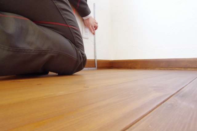 レーザレベルを使用しての傾斜調査、室内の欠損の調査を行います。