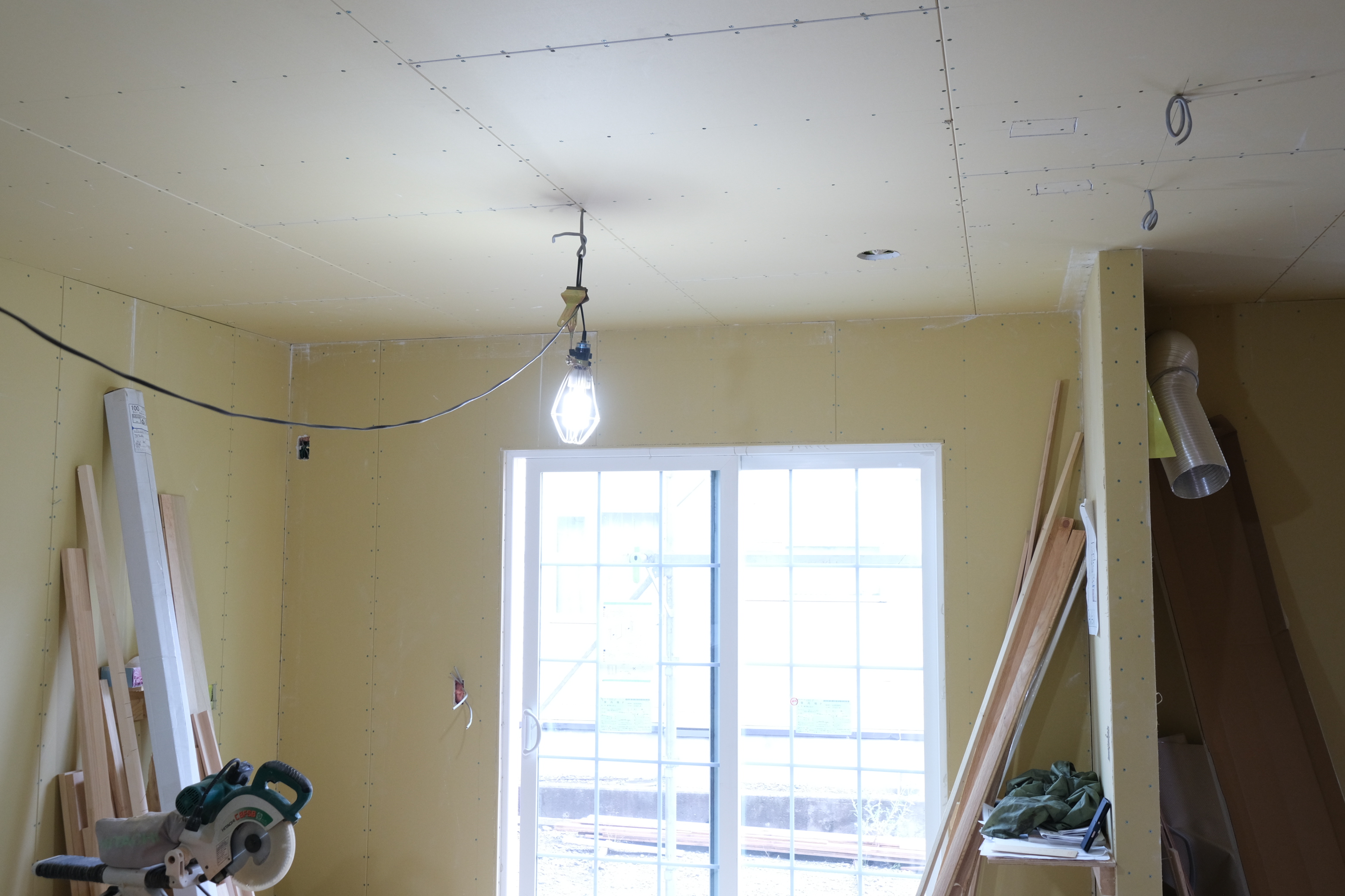 小柳の現場ではボード貼りが完了して内部工事が進んでいます