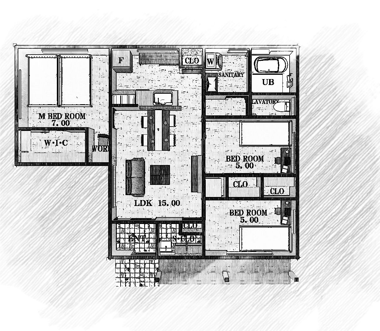 これまでのコンパクトな「平屋」を発展させて、家族皆んなで暮らすという試みから今回の「PLUSⅡ」は誕生しました。色々と途中までは部屋の配置等、色々と苦労したのですが、頑張りました。私では無く、社長がですが(笑)