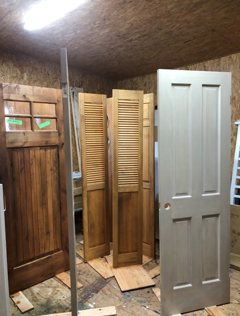 こんにちは。 建築課の濱田滉大です。 先日のblogにて、現在新築中の現場につく予定の加藤先生の新作(もとい建具笑)のほうがある程度、仕上がったということをお伝えしましたが、そちらの塗装が一通り、終わりました(^_^) 一応説明しておくと、この場合の建具というのは「建築物の開口部に設けられる開閉機能を持つ仕切り。おもに壁(外周壁や間仕切壁)の開口部に取り付けられて扉や窓として用いられる物」という事です。そのまんまですが、一応(笑) こちらのドアは等は、一枚一枚塗装の色を指定することが出来るのでお施主様のオリジナリティが出ます!「今回は白系が多め」とか「ブラウン系が多めだな…」とかその建物によっても変わってくるんですね(^_^) ちなみに塗装した直後の建具は乾燥させる時間が必要なので、大工さん達の作業小屋の奥底(笑)に格納されています。その為、この状態の建具を実際に見る機会は中々ないのですが、もし「どうしても見たい!!!」という方は、私の方から加藤先生にお願いしてみますので、下のlineからお問い合わせください(笑) まあ、そんなマニアックな人は中々いないんですケドネ(^-^; 旭工務店公式LINE@では直接のお問い合わせメッセージもお待ちしております。 家づくりに関しての気になる疑問から、具体的なお悩みまで、お気軽にご相談下さい