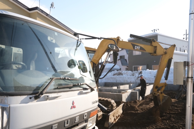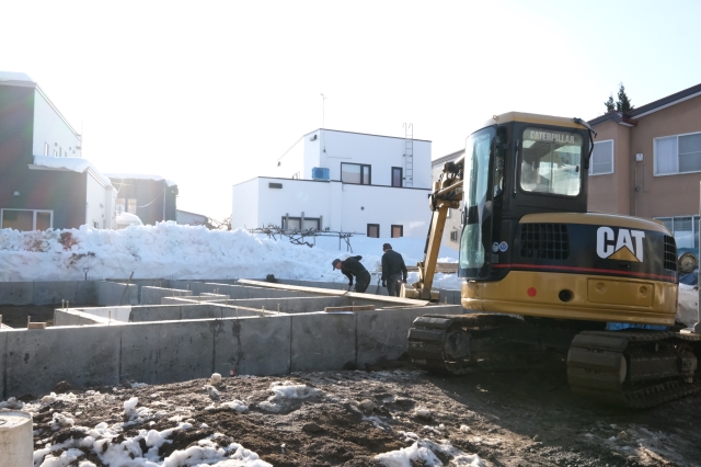 こんにちは。 建築課の濱田滉大です。 先週の雪もひと段落して、晴れの日が続いております。このままずっと降らなきゃいいのに(笑) この晴れ間を生かしまして、「浪館前田」の現場の方は、基礎工事の「型枠解体」の段階に進んでおります(^^)/ そもそも基礎工事における型枠とは、(基礎を作る為の)コンクリートを流し込む型の事です(毎度恒例Wikipedia参照です笑)コンクリートを流し込んだ後、充分に固まったらその型枠を外す工事があるのですが、新年明けてからのもの凄い雪の影響でその工事のタイミングが今になった感じです(^-^;