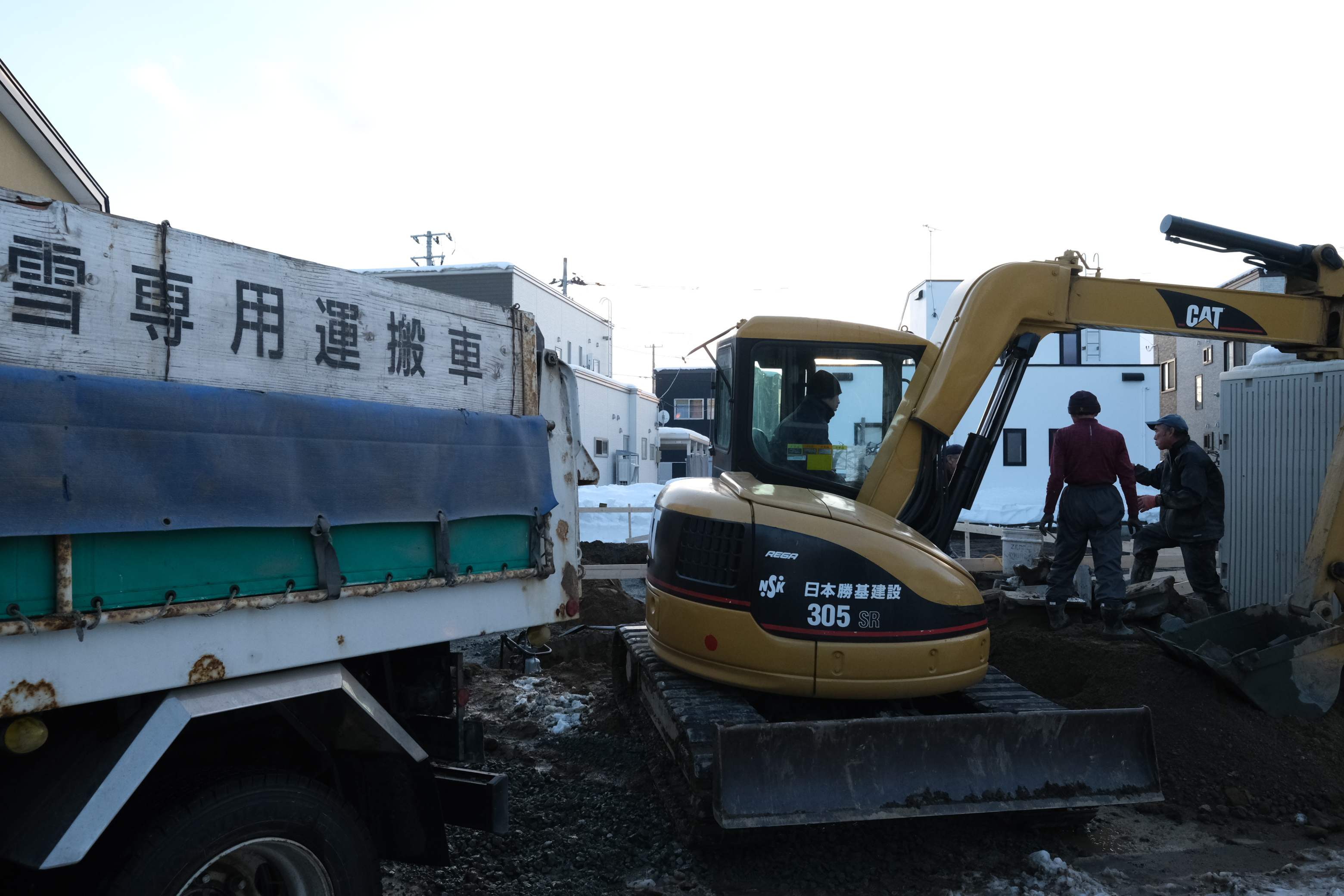 基礎工事とは、「地面と建物のつなぎ部分にあたる"基礎"を造るための工事の事」となります(毎度のWikipedia参照です笑)要するに、家造りの為の土台の作る工事となります(^_^)まあ、このシーズンはその作業前に除雪作業が入りますが(^-^;