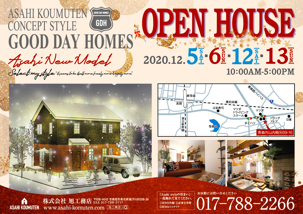 こんにちは。 建築課の濱田滉大です。 12月5日(土)、6日(日)、12日(土)、13日(日)の4日間にわたりまして、今年最後となります「BLOOKLYN OPENHOUSE」を開催します(^^)/ 旭工務店初の2週連続開催となります! 気になる会場の方は青森市三内稲元69-16です。つまり、私のblogによく登場していた「三内の現場」になります!皆さんお分かりかと思いますが笑 今回の建物はレンガの外壁がとてもオシャレな「BLOOKLYN」タイプの建物となっております。さらに今回は12月のクリスマスの季節という事で、中の方もクリスマス仕様の飾り付けとなる予定です!また、内部もお客様こだわりの空間となっております。
