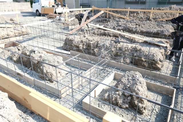 こんにちは。 建築課の濱田滉大です。 先日blogにて掲載したこれから開始となる三内の現場は、「遣り方工事」が終了しまして、「基礎工事」の段階に進んでおります!! 今回は珍しく写真が間に合いました(笑) 基礎工事とは、「地面と建物のつなぎ部分にあたる"基礎"を造るための工事の事」となります(毎度のWikipedia参照です笑)要するに、家造りの為の土台の作る工事となります(^_^) 今は基礎を作るためのコンクリートを流す準備の段階になっております。さらにそのコンクリートを支える「鉄筋」と呼ばれるものもこの段階で用意しています(^^)/(よく言われる"鉄筋コンクリート"の「鉄筋」とはこの物の事を指しています)順番としては「底→配筋工事→コンクリート」という感じで下からせりあがってきている感じになります。私はこれを「ポップアップしている」と読んでいるのですが、全く定着しておりません(笑) 私の定着していない呼び方は置いときまして(笑)この基礎工事の段階になると、重機等の出入りもあるので、現場の近くに行かれる方はお気をつけください。 旭工務店公式LINE@では直接のお問い合わせメッセージもお待ちしております。 家づくりに関しての気になる疑問から、具体的なお悩みまで、お気軽にご相談下さい