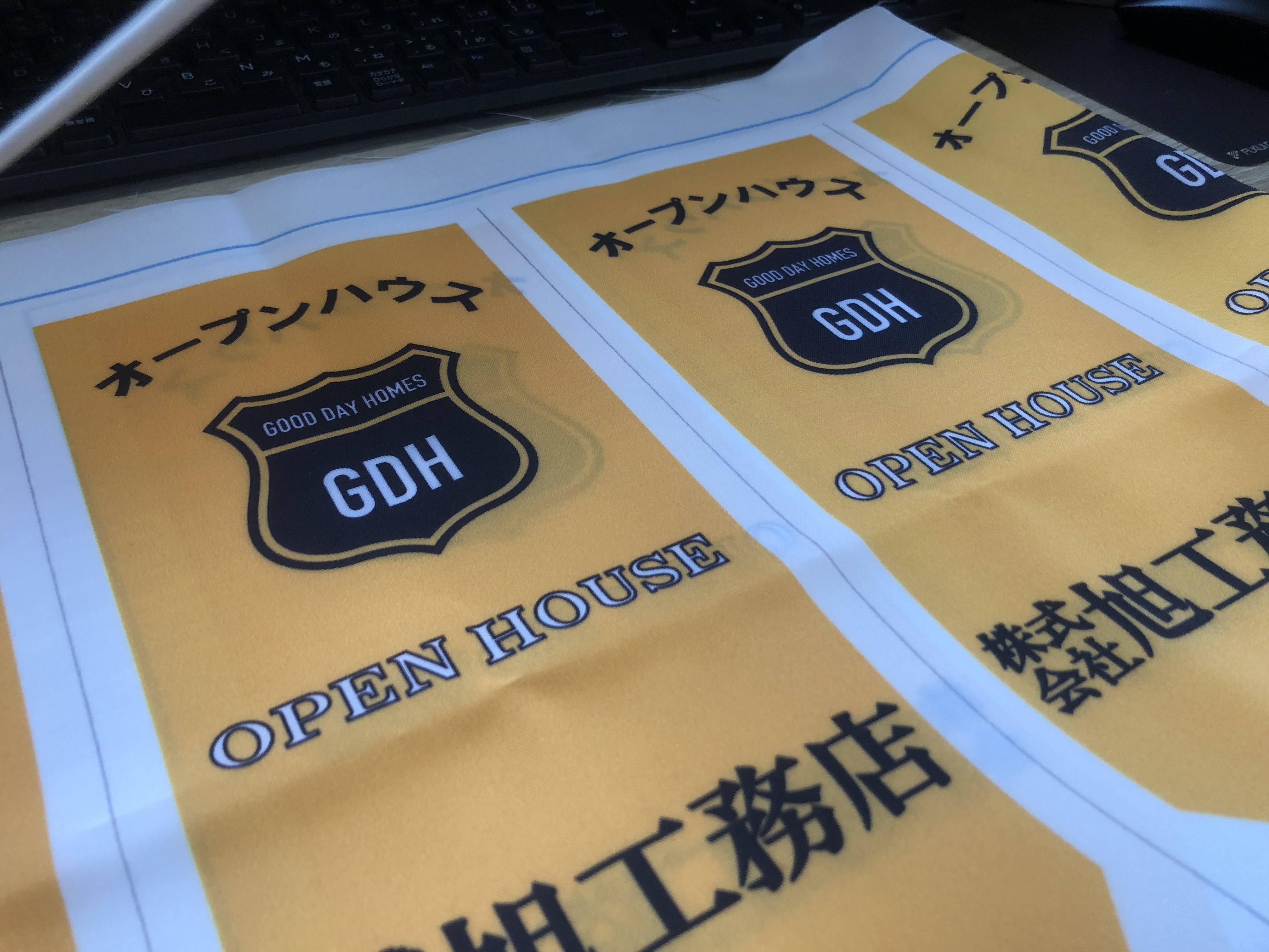 こんにちは。 建築課の濱田滉大です。 先日のblogにも書いたGOODDAYHOMESの旗の別バージョンですが、印刷屋さんから旗見本?色見本?なんて言うのかはわかりませんが(笑)見本の方が届きました!!